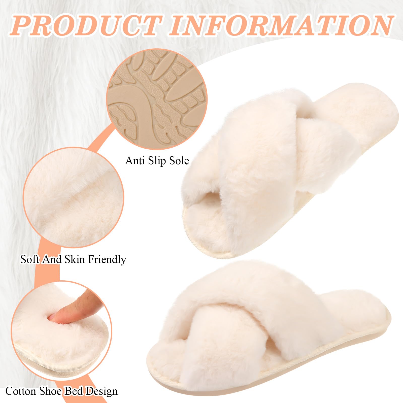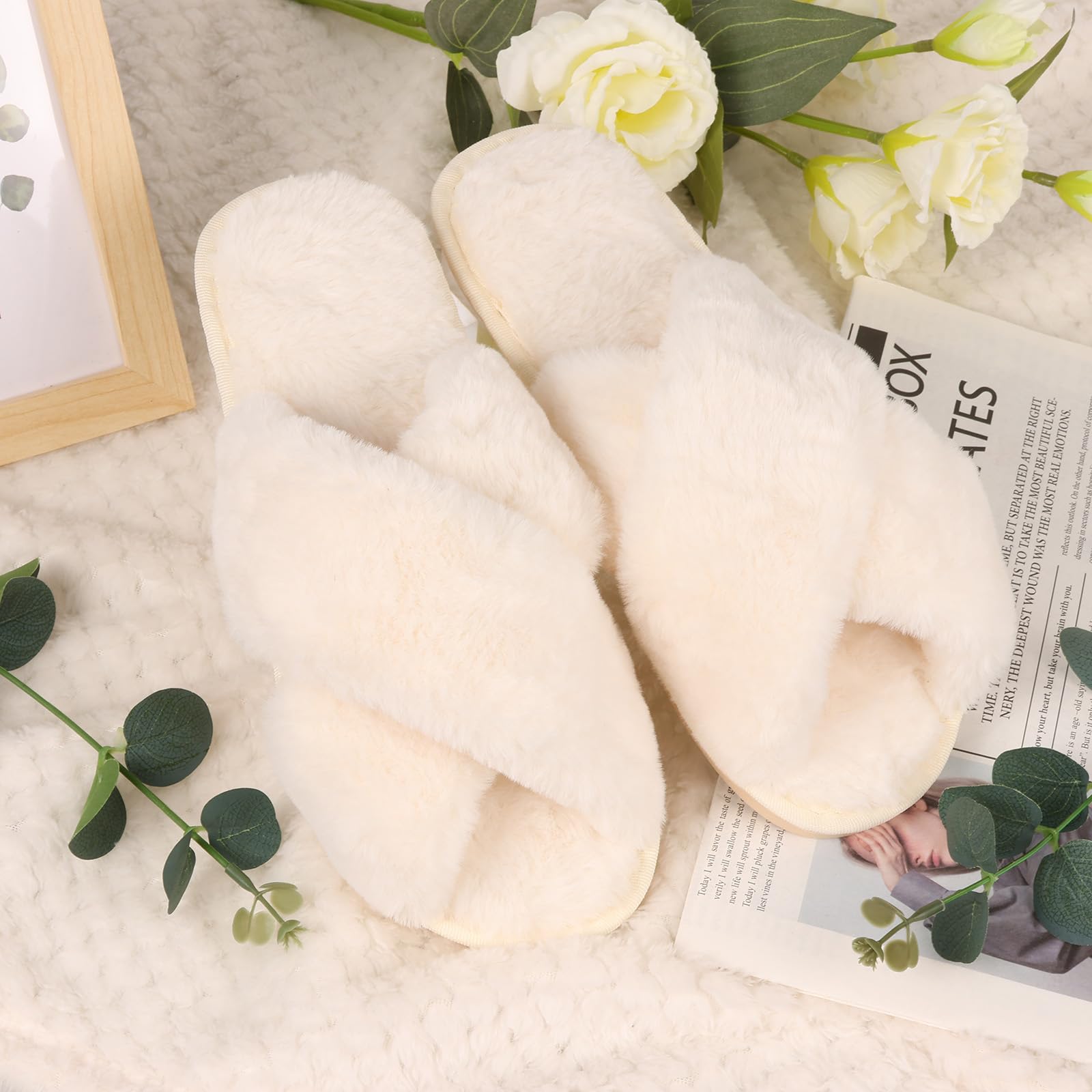 Open Toe Bridal Slippers: The cross open-toe style of plush slippers is not only fashionable and beautiful, but also allows the toes to breathe freely, avoid stuffy heat, and increase wearing comfort. The open-toe design and slip-on style make it easy to put on and take off