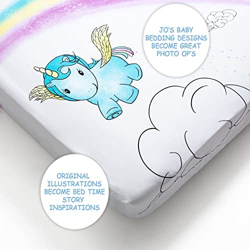 Snugly Fitted - JumpOff Jo 52 x 28 inches cotton crib sheets are fully elasticized for a secure fit on standard crib mattresses and toddler beds. Fitted sheets stay snug all night for your baby’s comfort.