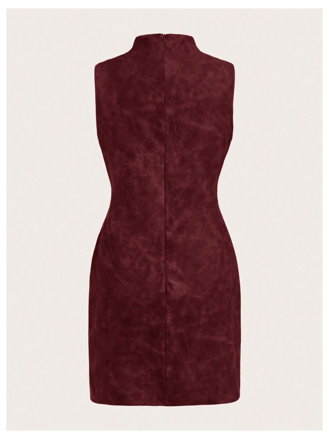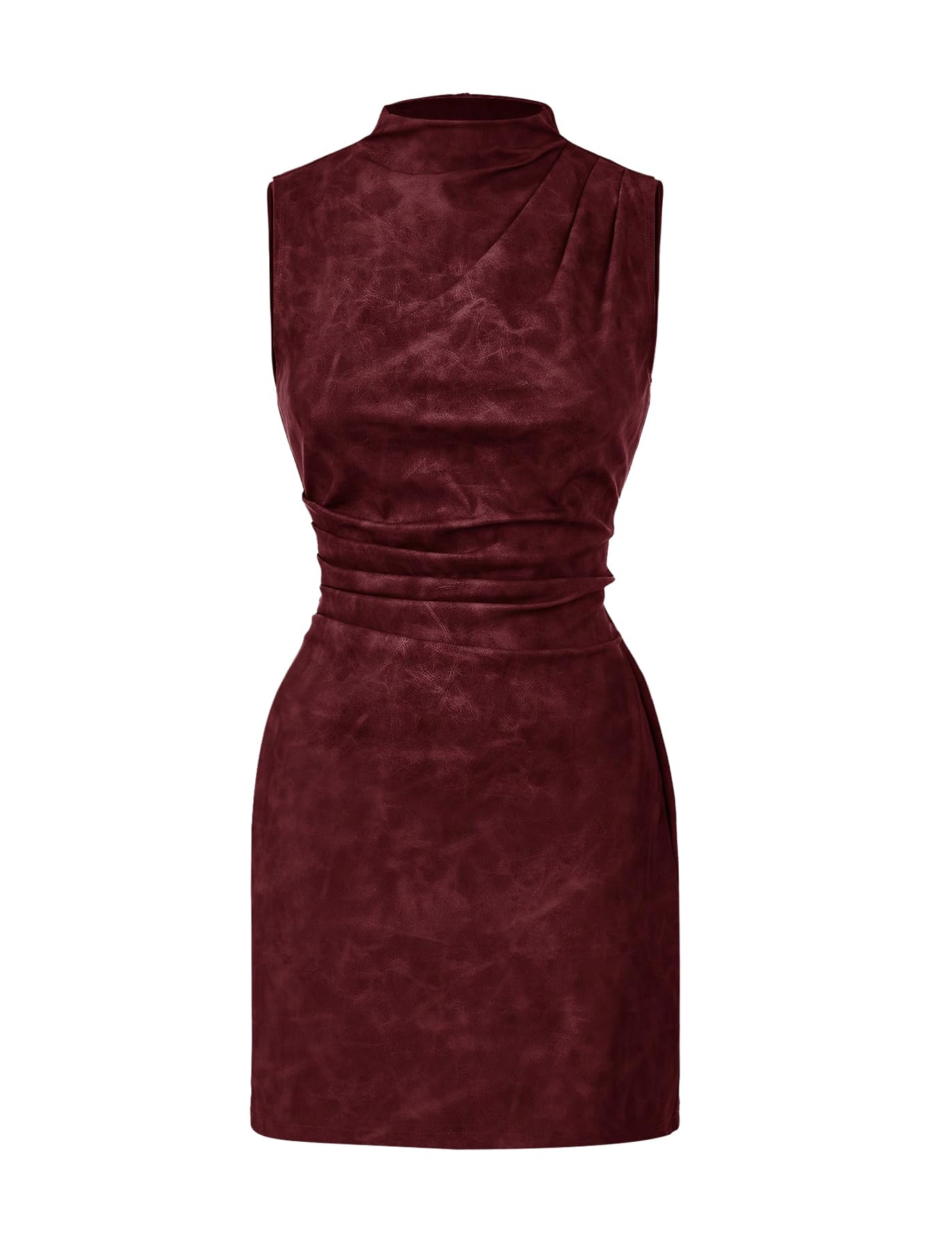 Features: Womens dress features ruched, sleeveless, mock neck, slim fit, ruched, high waisted, pu leather, vintage