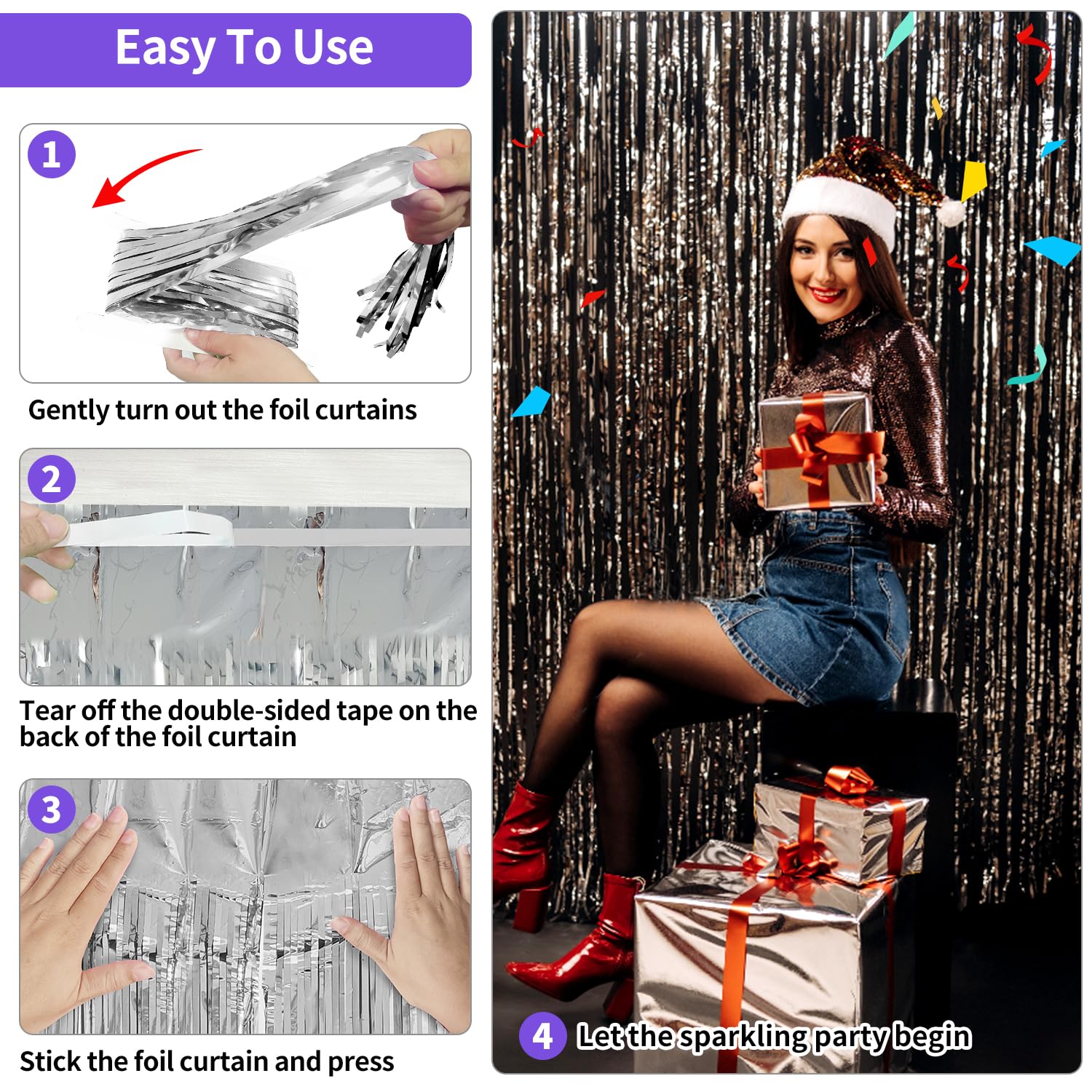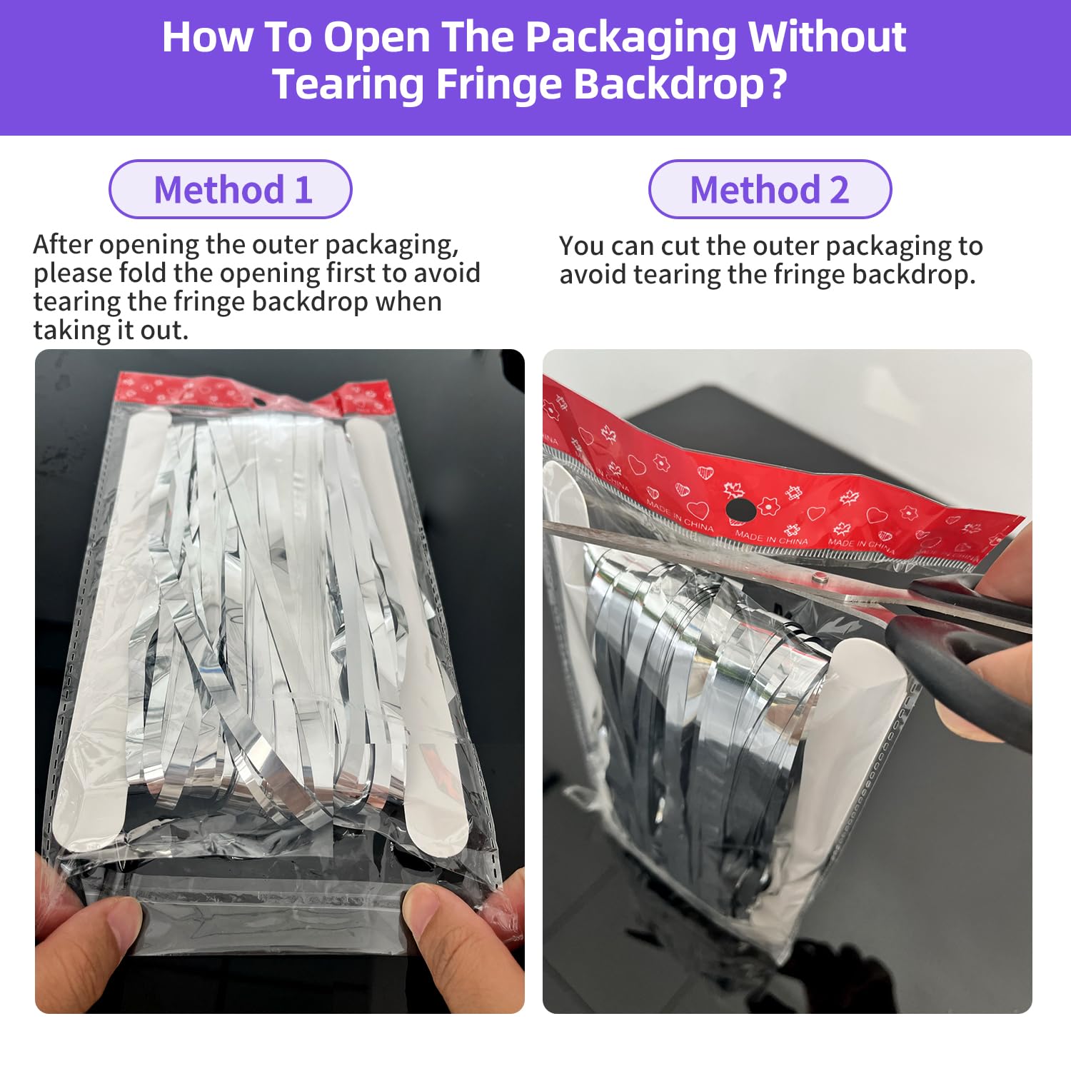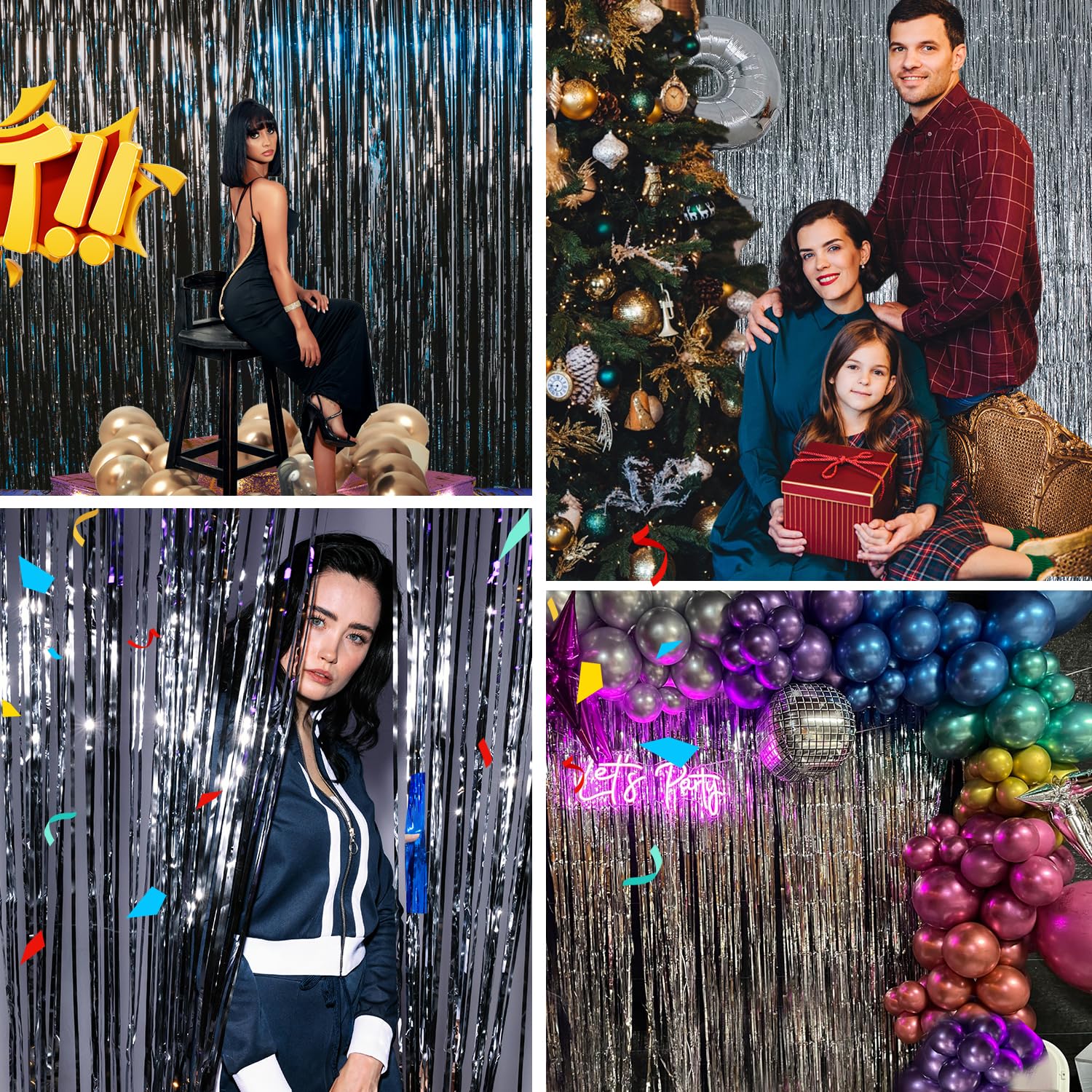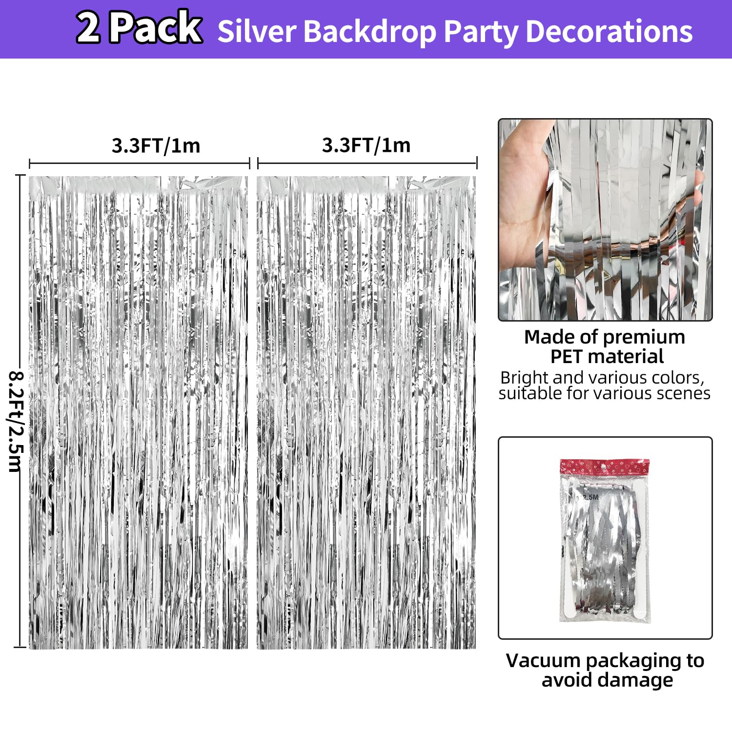 Silver Tinsel Backdrop: Package includes two fringe backdrops and are vacuum sealed to protect backdrop from breaking during shipping. One silver backdrop measures 3.3x8.2 ft, making it easy to add fun to party decorations. Get ready for a glitter party
