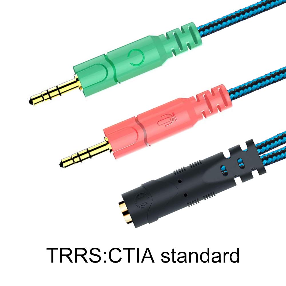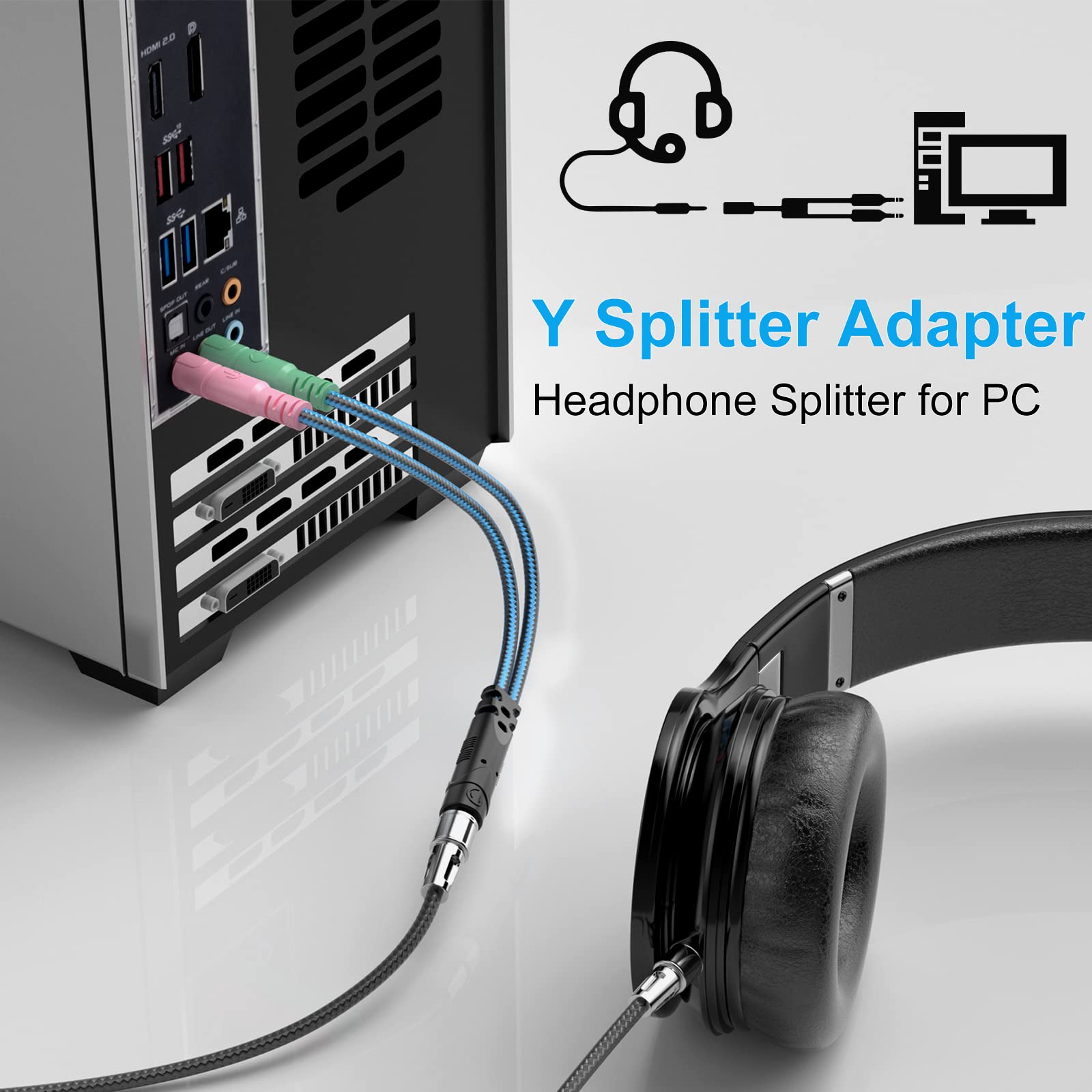 ENVEL Headphone and Microphone Splitter Cable for PC 3.5mm Jack Adapter Convertors 3.5mm Y Splitter Audio Transform Female to 2 Dual 3.5mm Male for Computer(Blue)