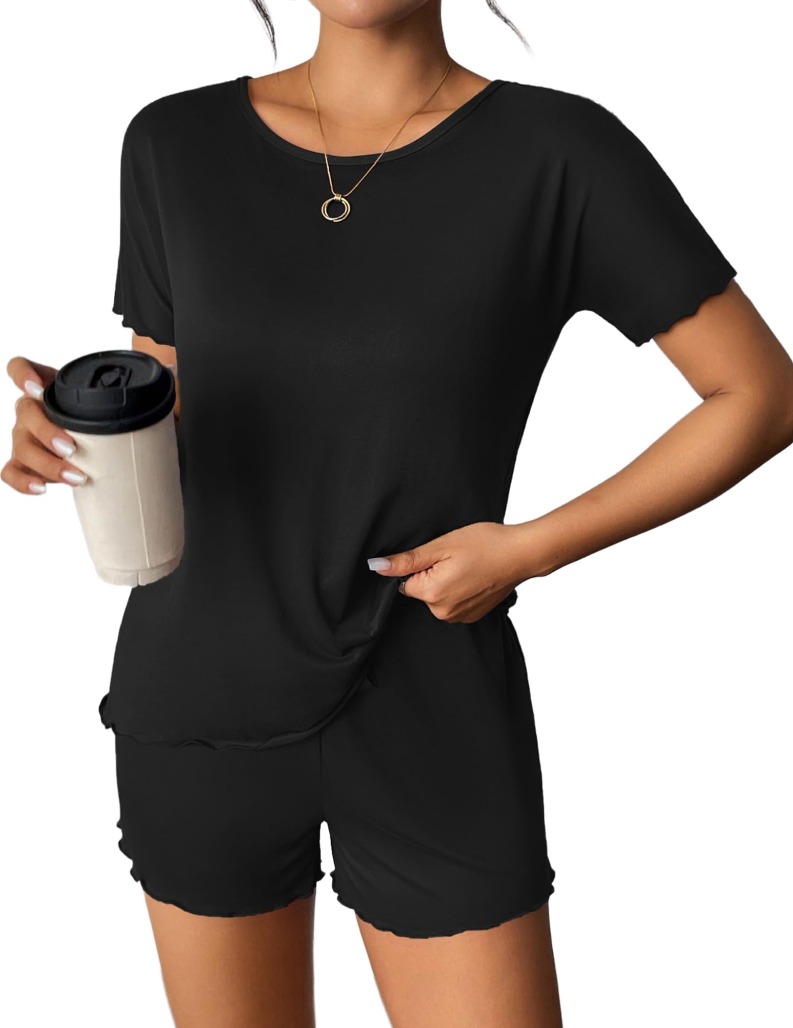 Ultra-Soft Women's Short Sleeve Pajama Set – Breathable 95% polyester and 5% spandex blend ensures all-night comfort with stretchy, lightweight fabric perfect for hot sleepers.