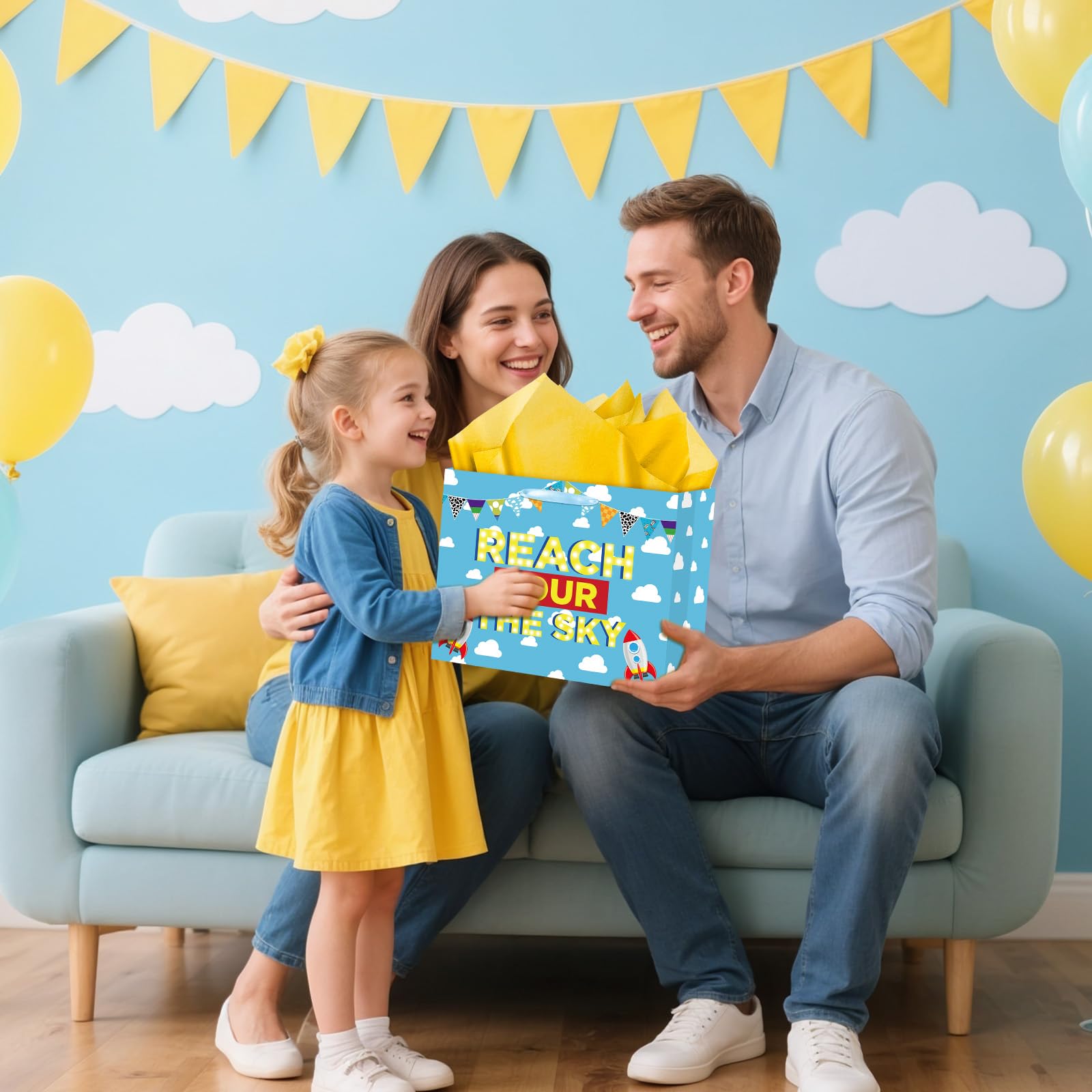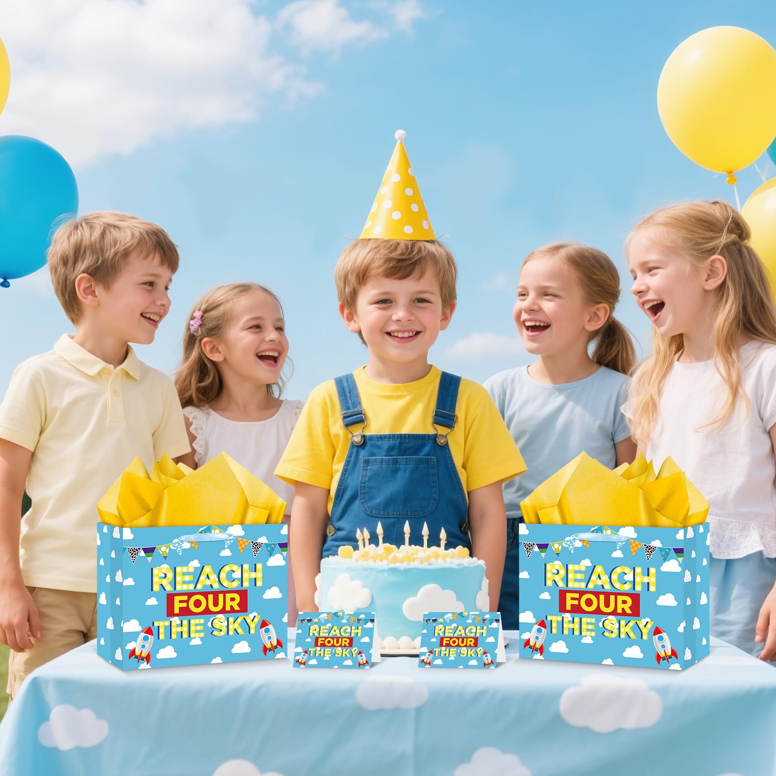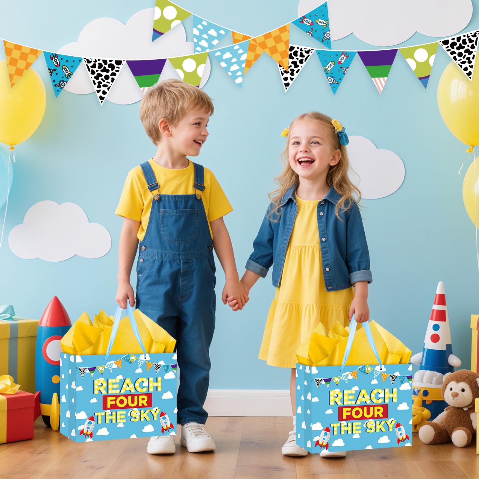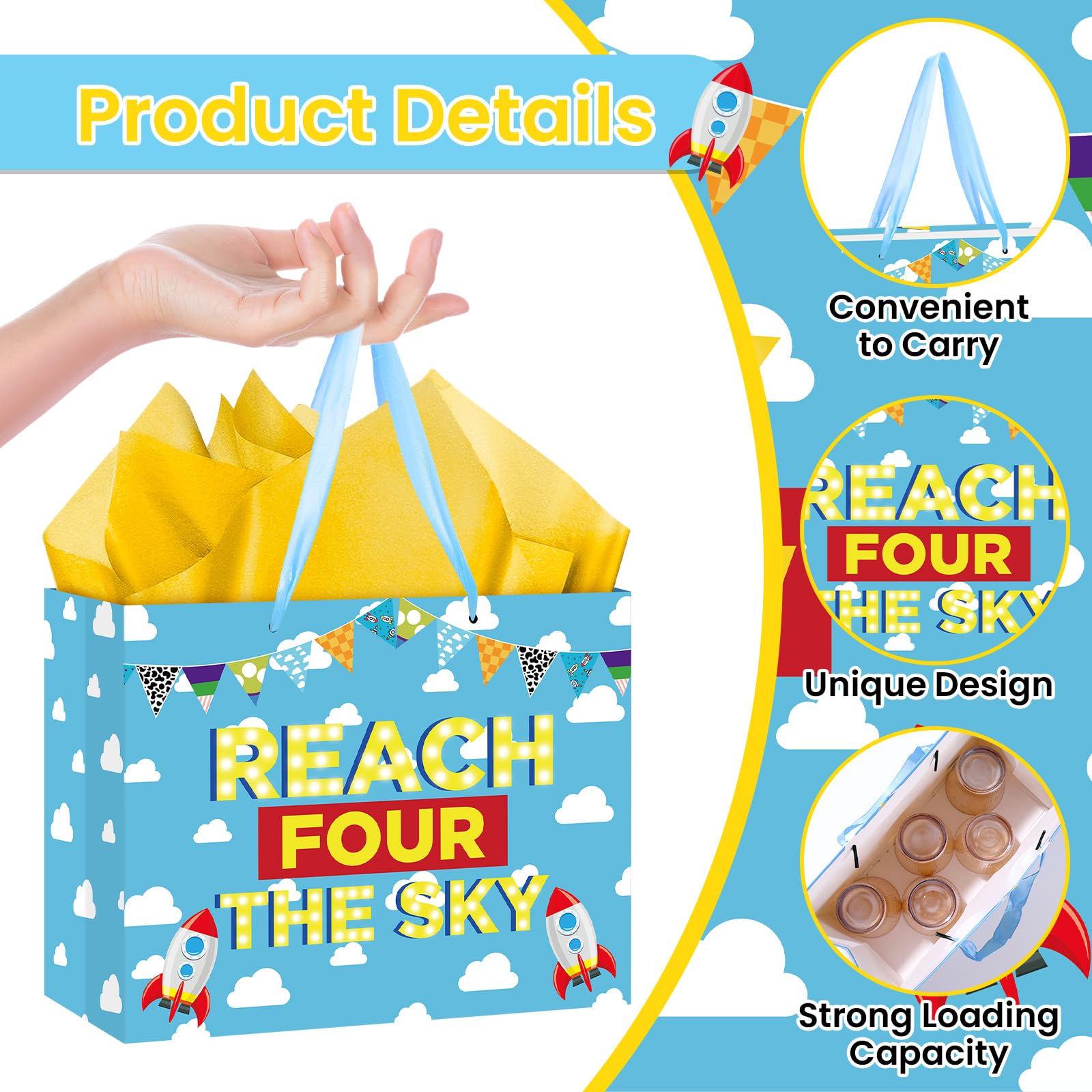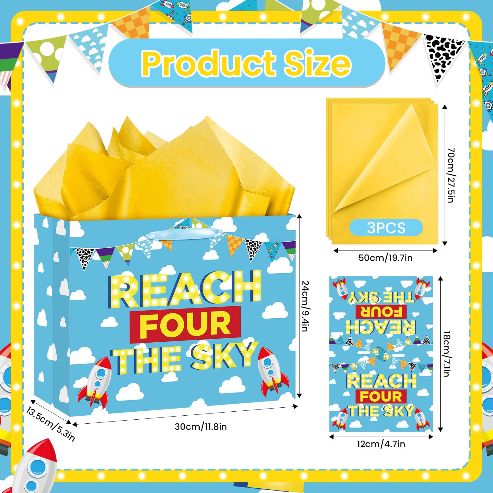 Package Included: This cartoon story 4th birthday gift bag set includes one ample-sized gift bag with durable handles, 1 pc blank matching theme greeting card for personalized wishes, and 3 pieces of yellow tissue paper for an elegant presentation—a complete and convenient solution for wrapping your special birthday gifts
