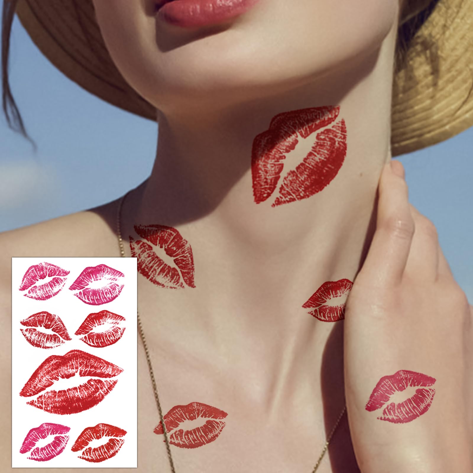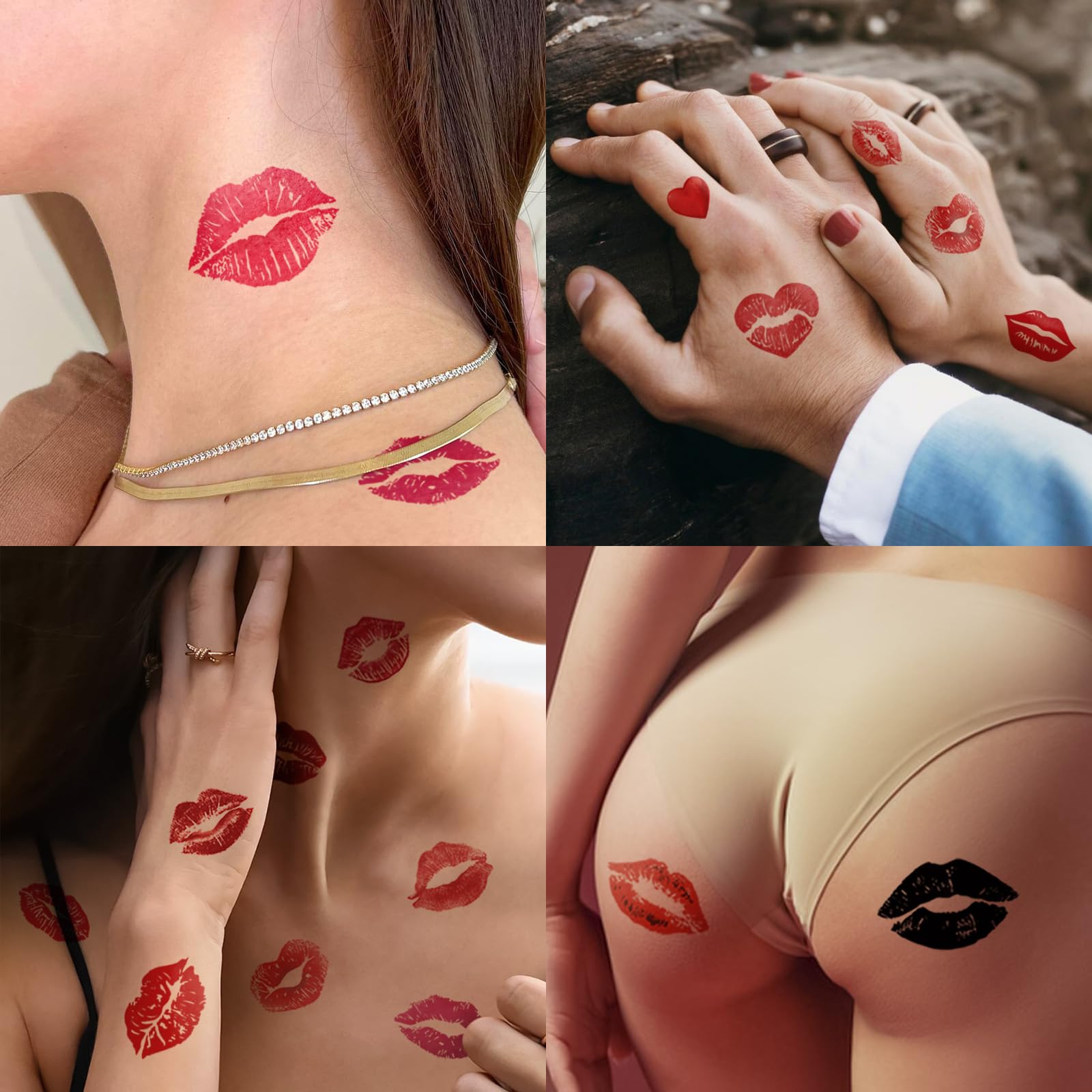 Easy to Apply and Remove : Our lipstick mark tattoo is super easy to use! 1:Remove the backing by peeling it off. 2:Apply the sticky side to your skin. 3:Dampen a towel and apply pressure to the patch for 60 seconds. 4:Remove the lip tattoos to reveal your gorgeous looking.