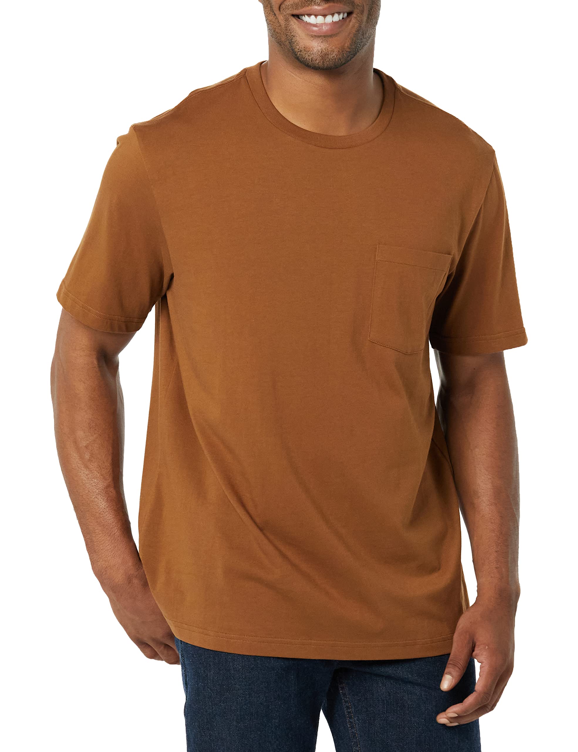 PRACTICAL DETAILS: Designed for convenience and comfort with ribbed neck trim, a front chest pocket, and a tagless label, these pocket tee shirts offer soft jersey-knit taping along the neck seam