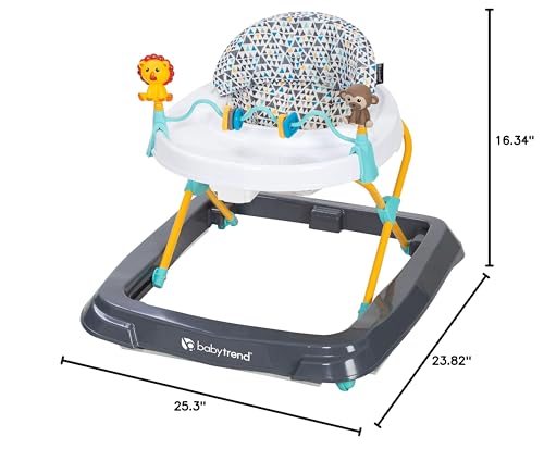 The Baby Trend Walker in Zoo-ometry is designed for comfort and with your baby's needs in mind. The walker is a breeze to set up, clean and fold, and it's easy and fun for your baby to use. Along with the multi-directional wheels that offer freedom of movement, the extra-wide base provides superior support and stability so your baby will enjoy playing and moving about. The Baby Trend walker has a large surround tray and removable toy bar! The Baby Trend Walker also features a three-position height adjustable and high-back padded seat for added comfort. 0 to 12 Months, 12 to 24 Months.