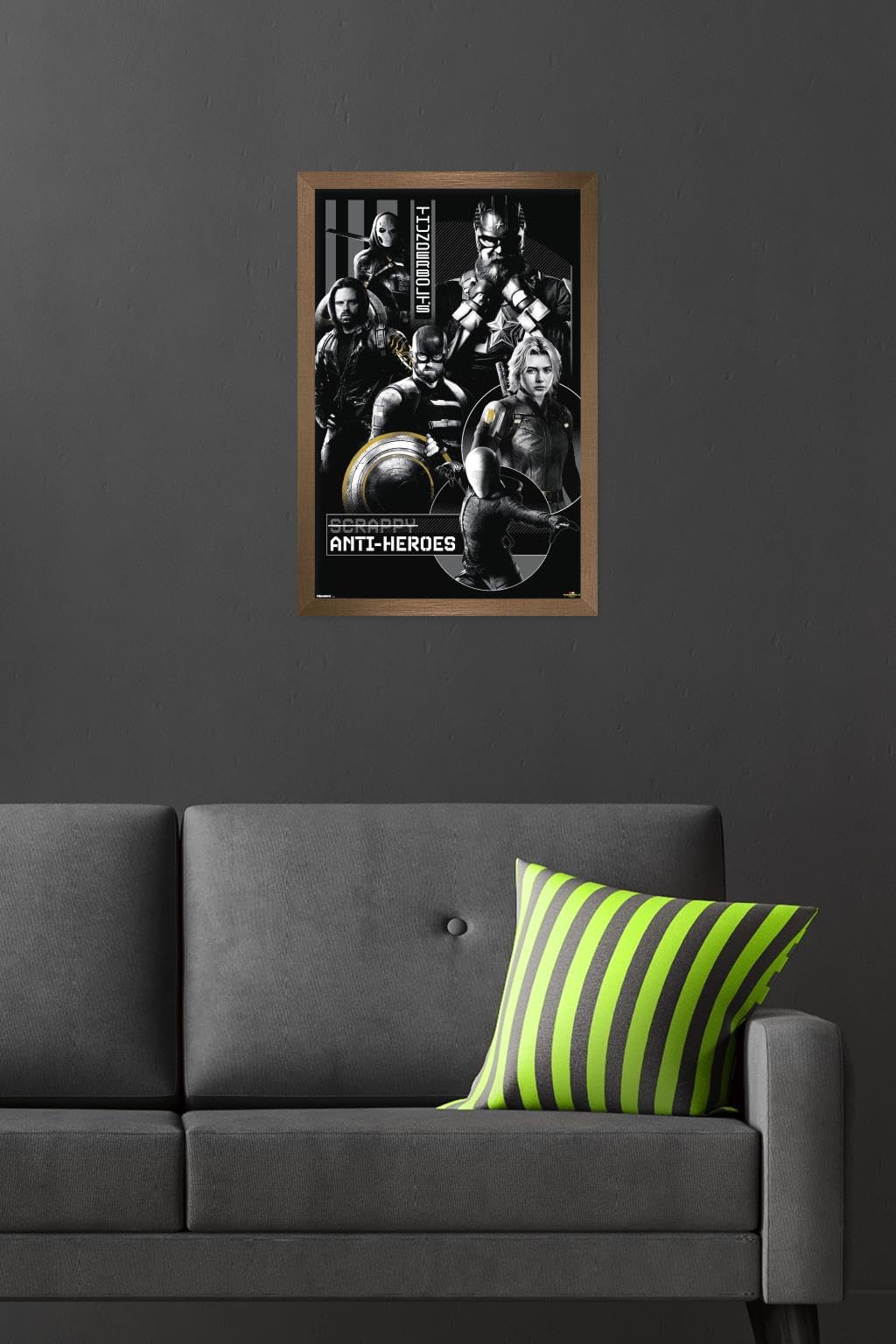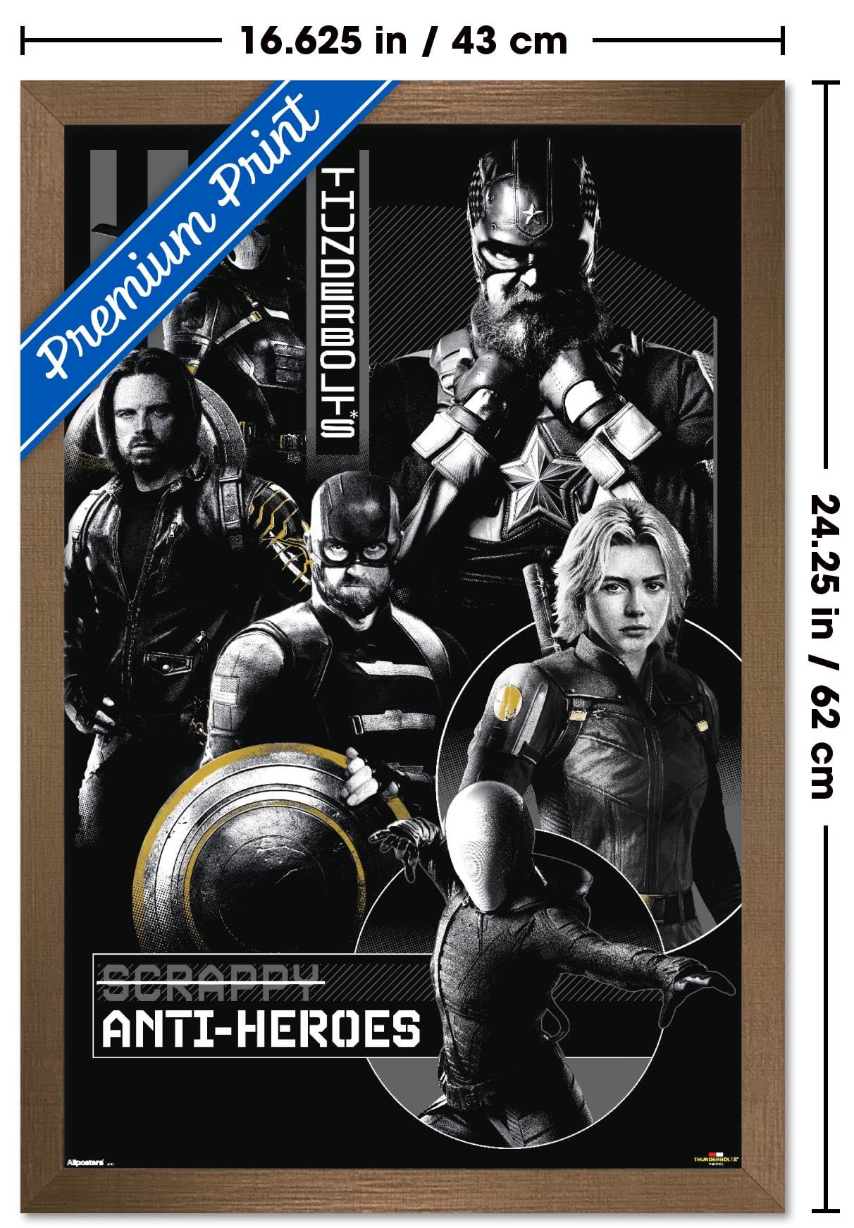 Allposters framed posters are everyone's favorite room decor! The clean, modern design and premium satin finish of this Marvel Thunderbolts - Group Wall Poster will make a bold wall decor statement in any room. Decorate the bedroom, bathroom, kid's room, living room, office, dorm, and more! Our framed posters are lightweight and easy to hang using the sawtooth hanger so you'll be able to enjoy it in no time. Every one of our framed posters are proudly Made in the USA. Add these decorations alongside the other accessories on your party supplies list too! Allposters's wall posters are the perfect way to dress up your parties. A framed poster makes a great gift as well! Whether it's for a birthday, Christmas, house warming or for your best friend, they'll love receiving a framed poster to show off their style.