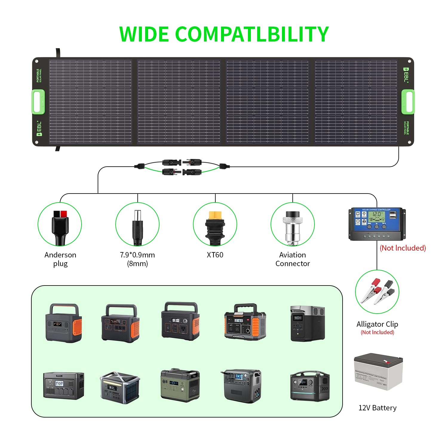 MADE FOR SOLAR GENERATOR--200W solar panel comes with a connector, 7.9*0.9mm/Anderson/XT60/Aviation connector Cable, compatible with most solar generators/portable power stations on the market.