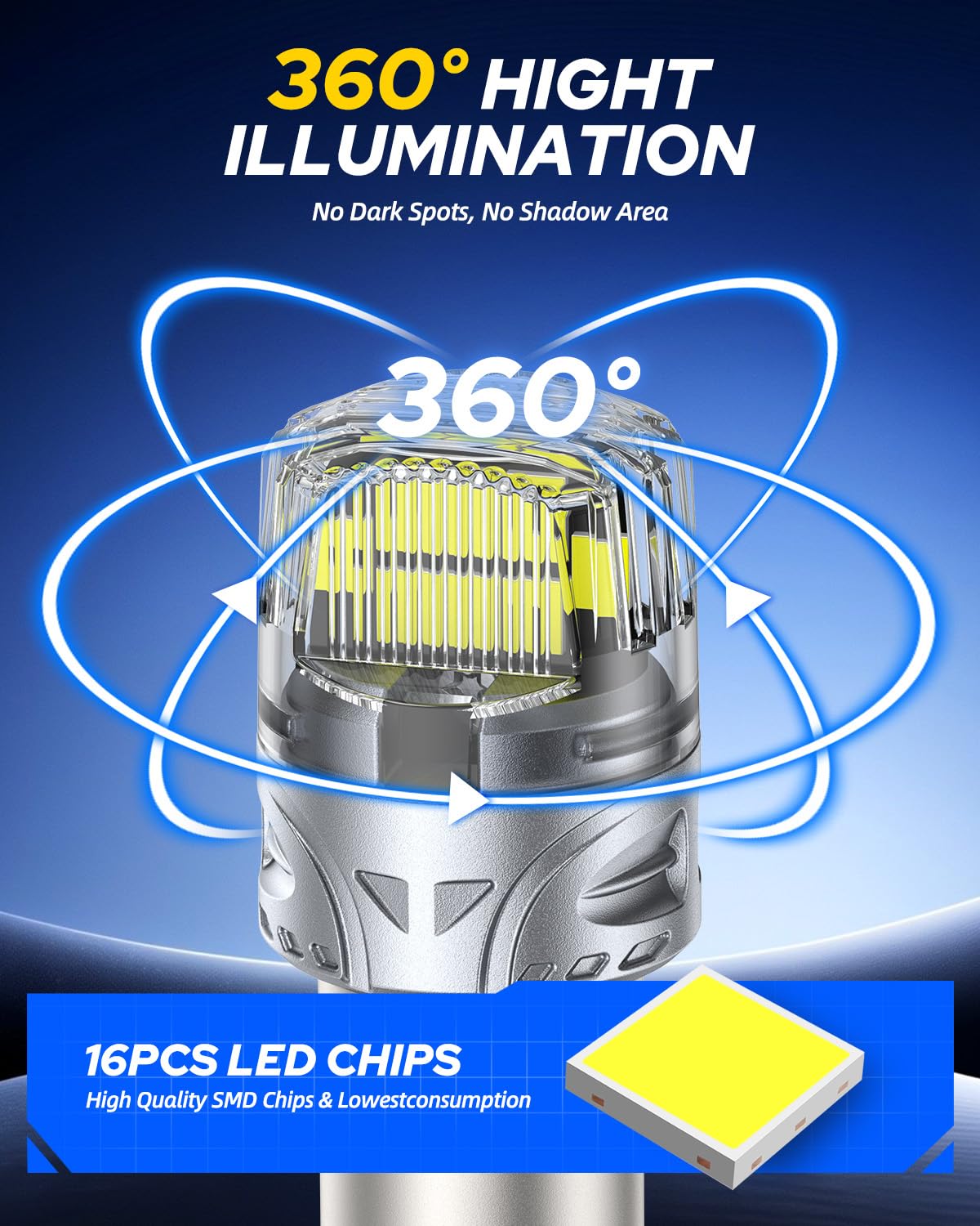 【50,000-Hour Extended Lifespan】: Featuring a robust aerospace-grade aluminum alloy housing that enhances heat dissipation and reduces replacement frequency, these 1157 LED bulbs deliver exceptional thermal performance for over 50,000 hours of continuous, stable operation.