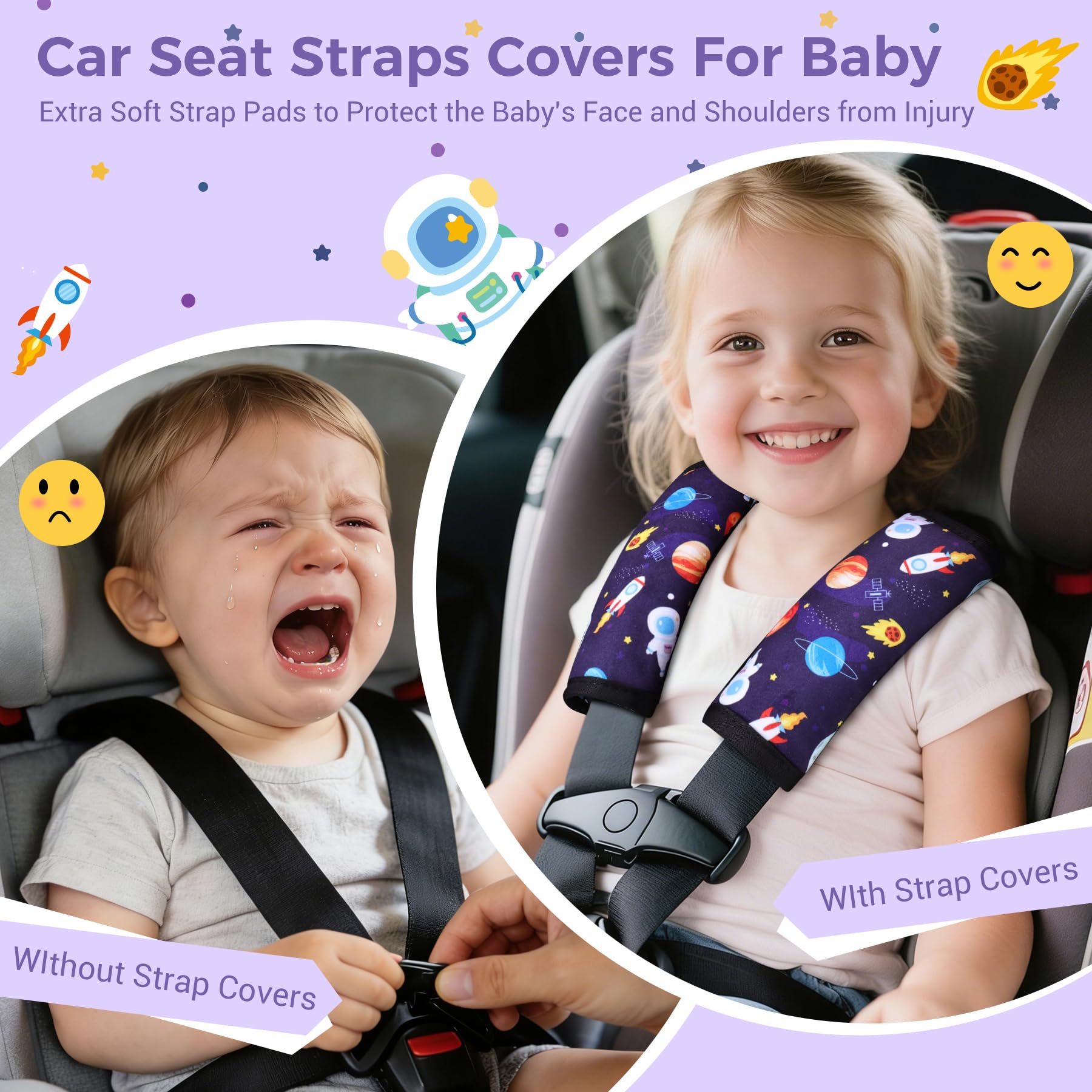 Superior Softness and Comfort: Made from super soft velvet touch fabric, the soft wraps belt covers provide additional comfort to prevent rubbing and irritation from car seat straps. Kids will feel much more comfortable with the soft foam pads, we pay more attention to design nice and comfortable baby shoulder pads for your kids