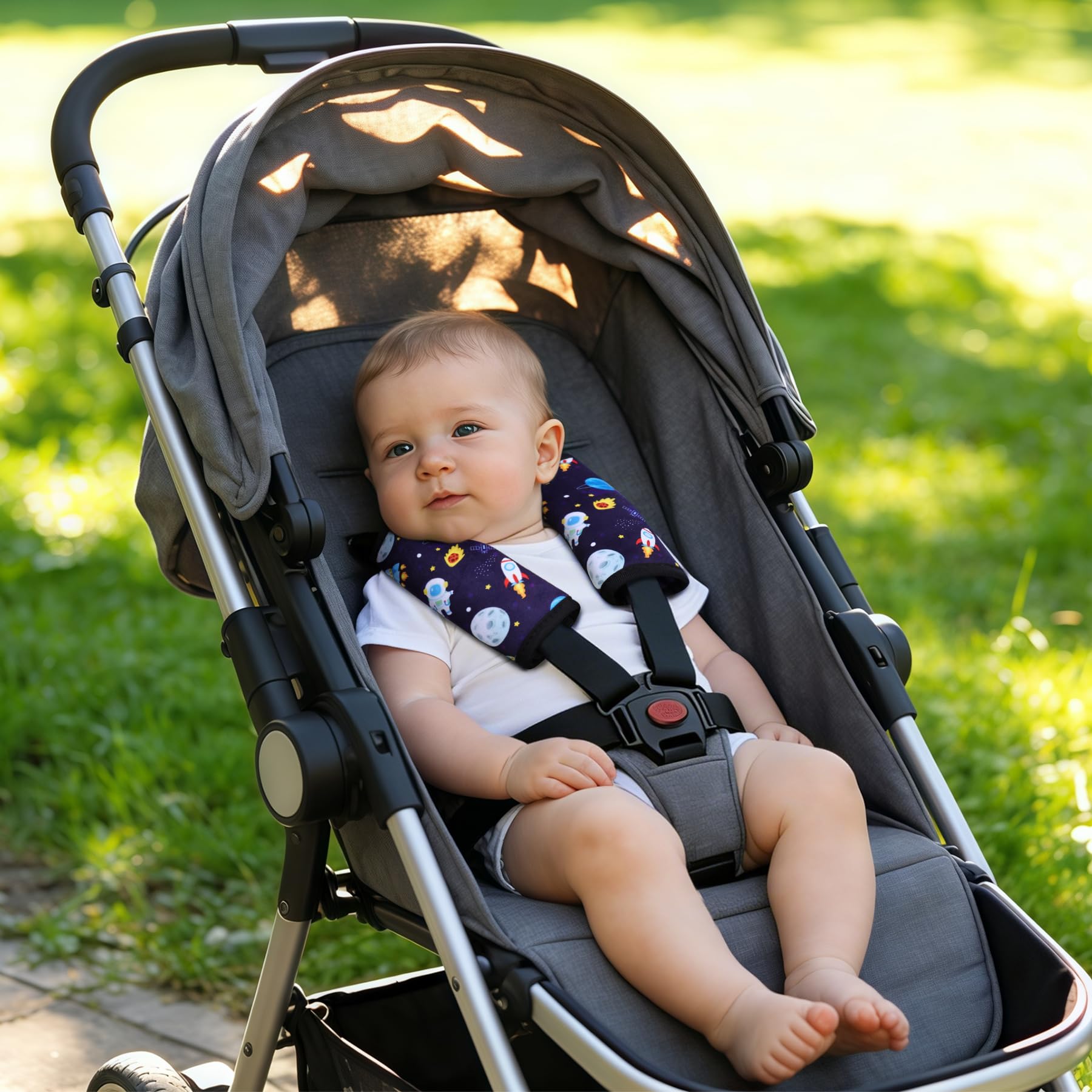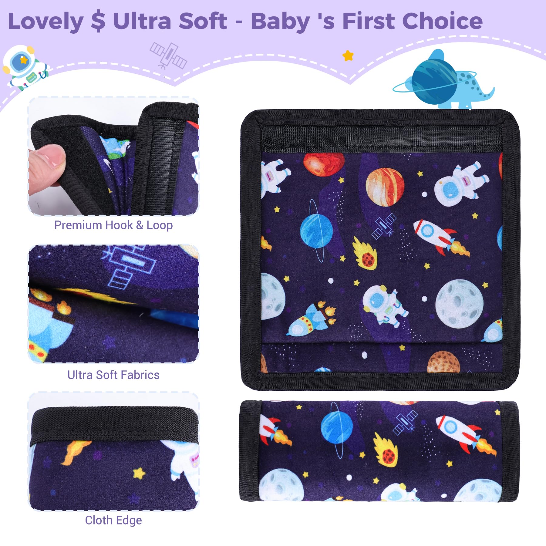 Safety First Design: Seat belt cushions prevent any slippage, providing effective security whether in the car, infant carrier high chair dining chair or stroller. Super soft velvet pads ensure your kids can experience the joy of the journey, long or short