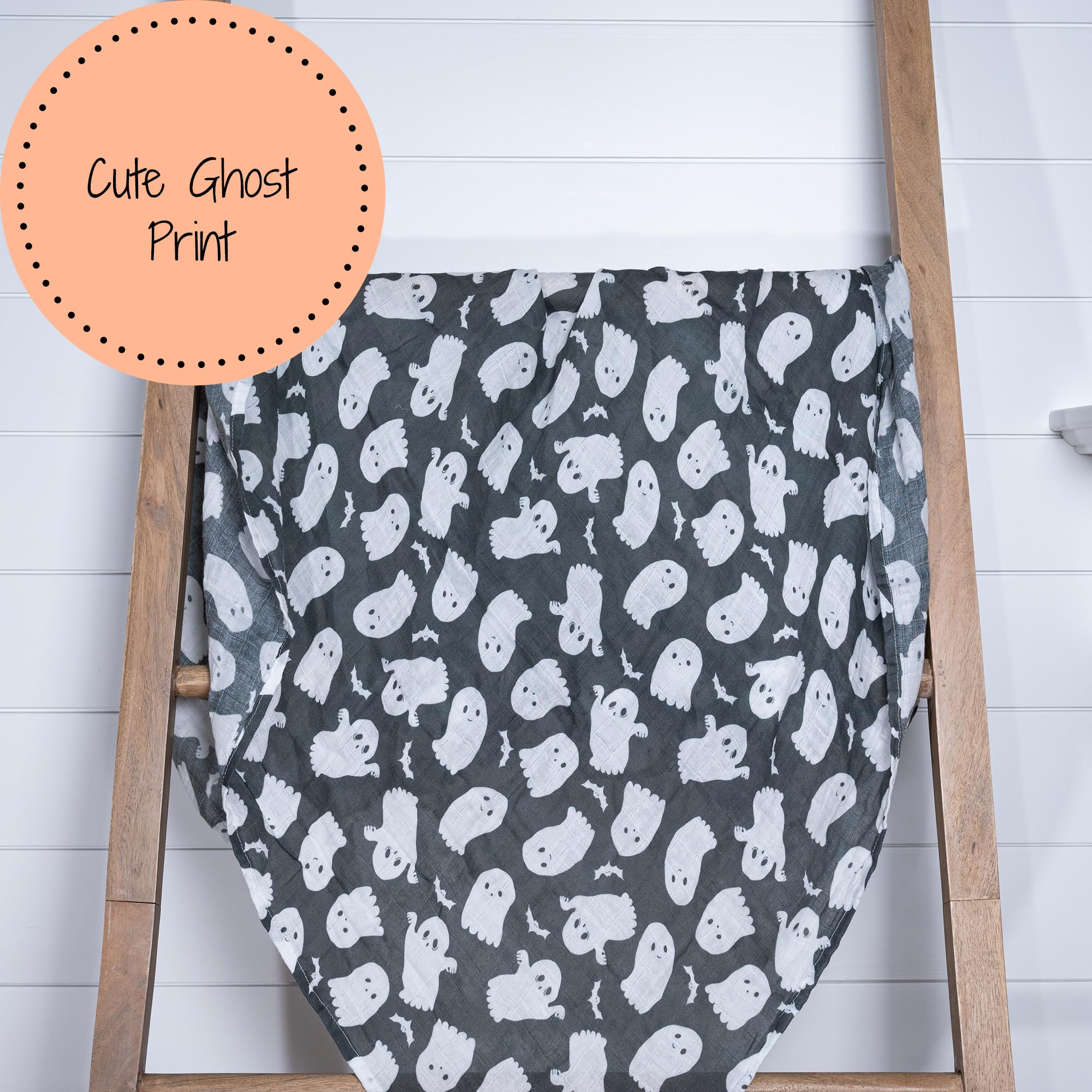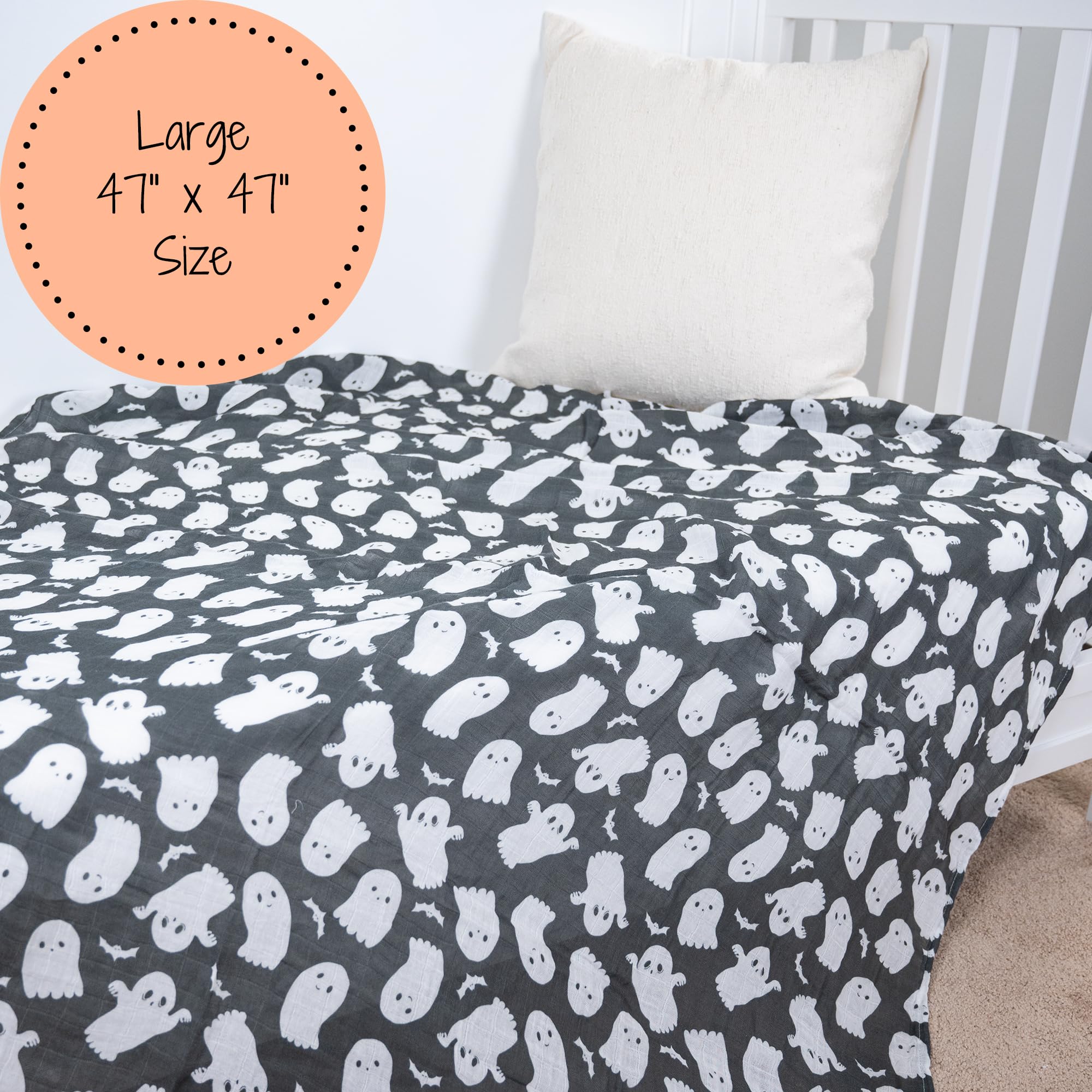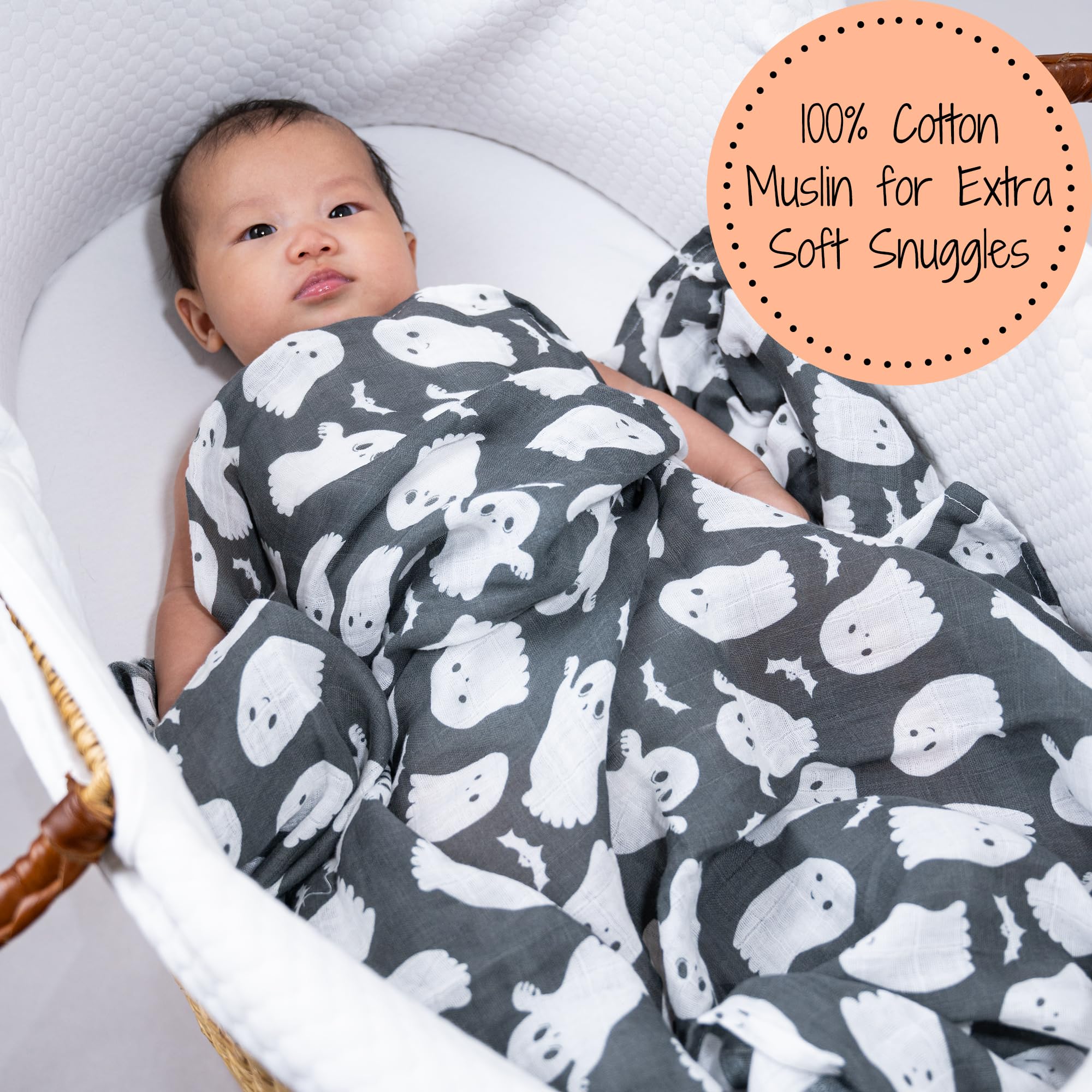 LollyBanks Muslin Swaddle Blankets, 100% Cotton Baby Swaddle for Newborn Boys and Girls, Soft and Breathable 47 x 47 Inches Infant Blanket, Baby Registry Must Haves (Cute Ghost Halloween Print)