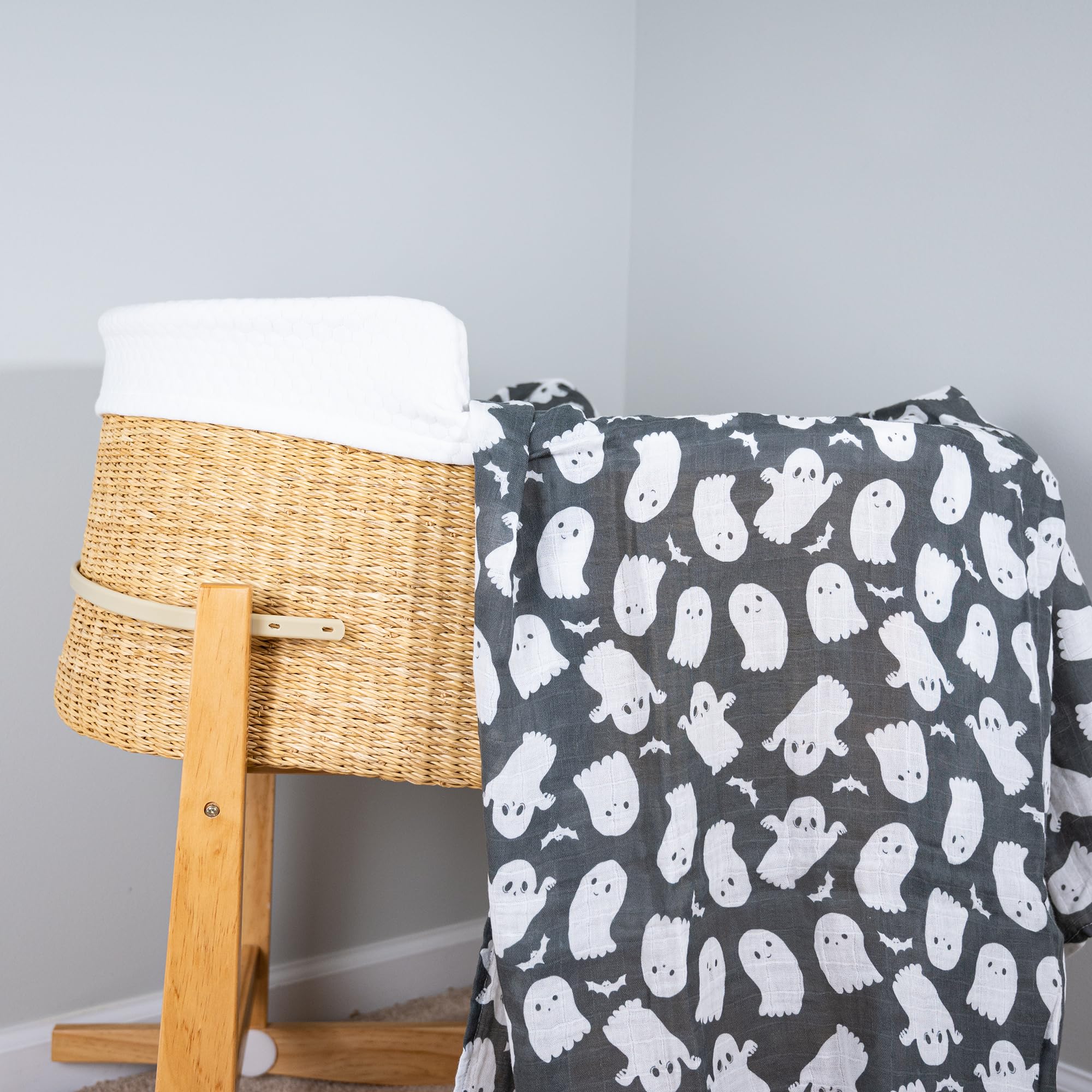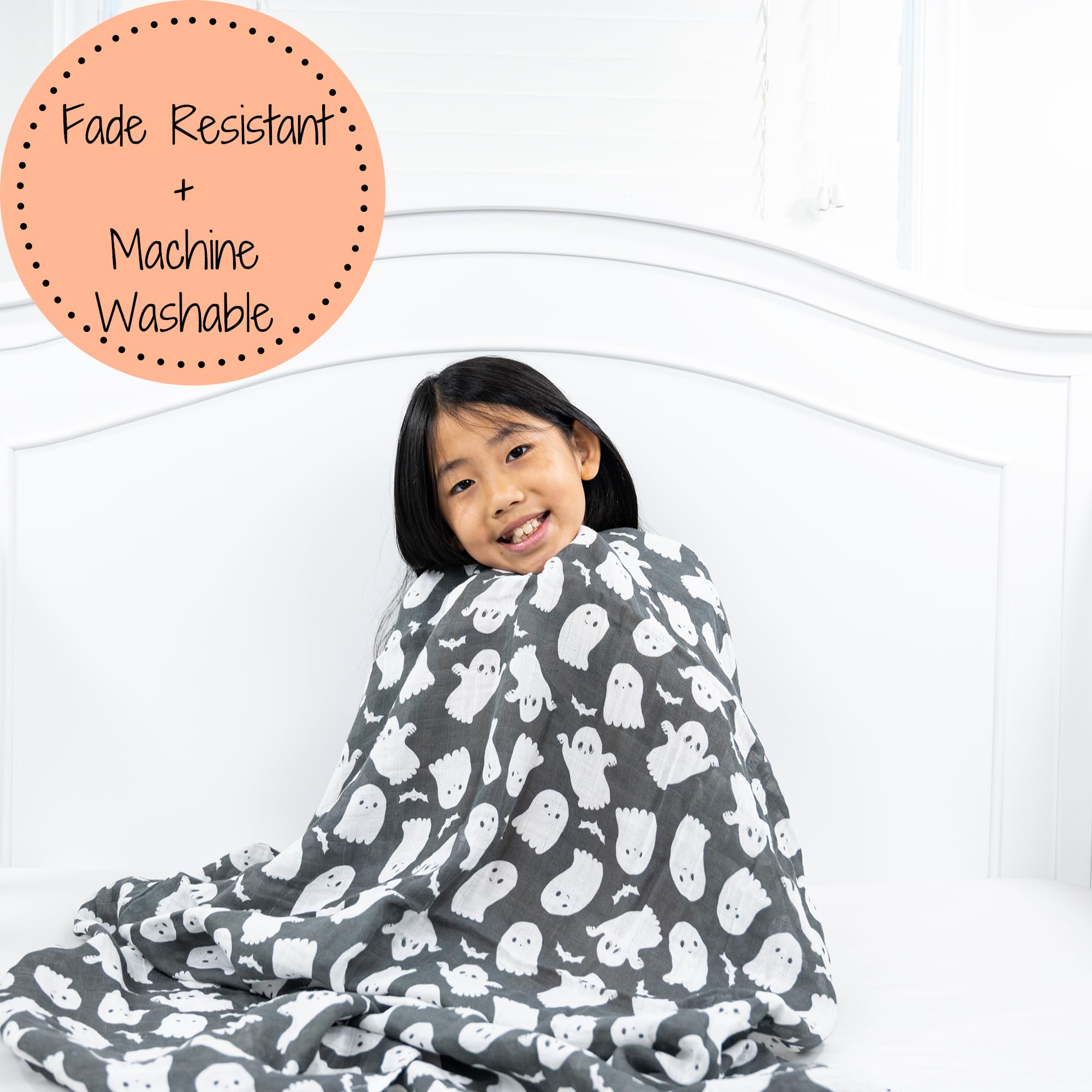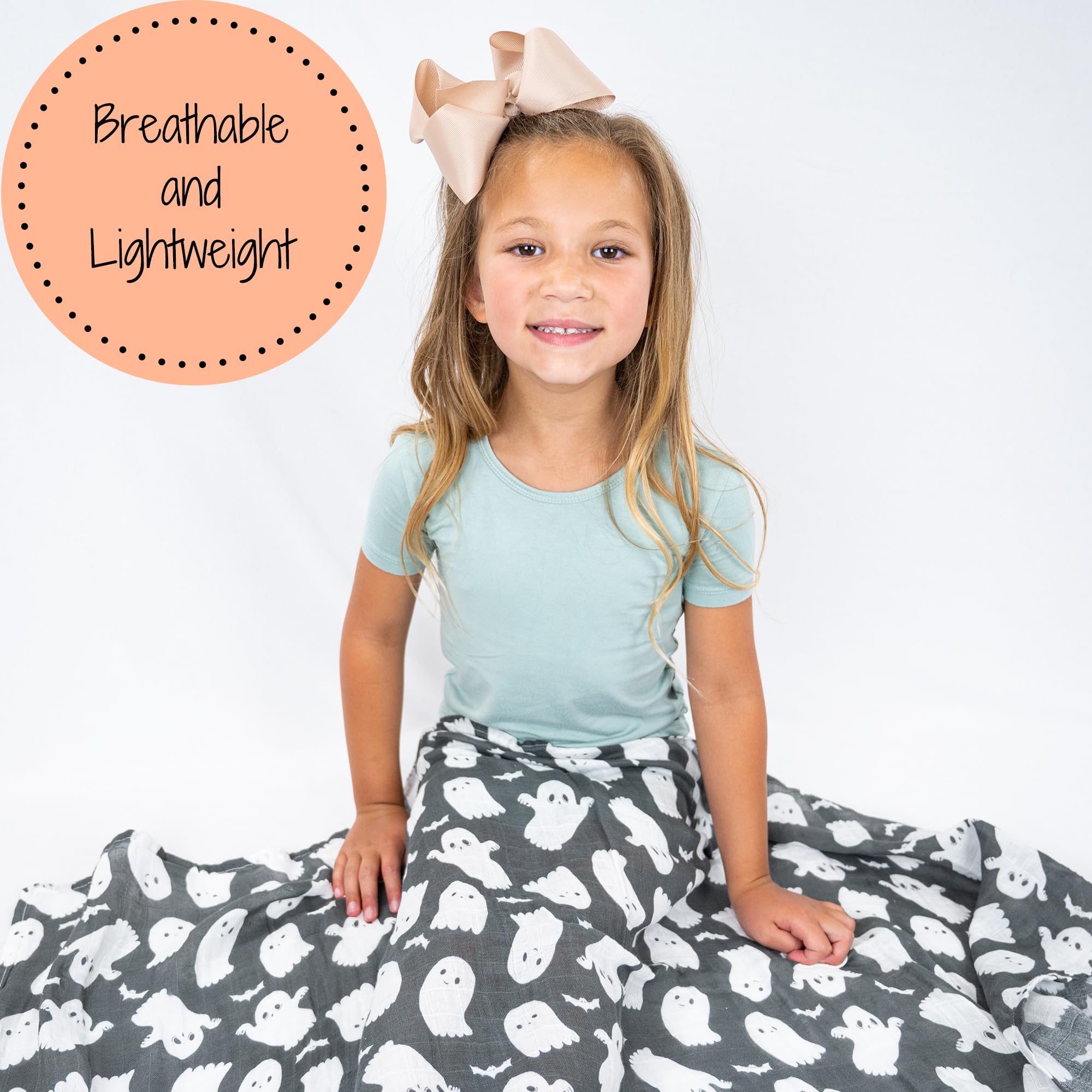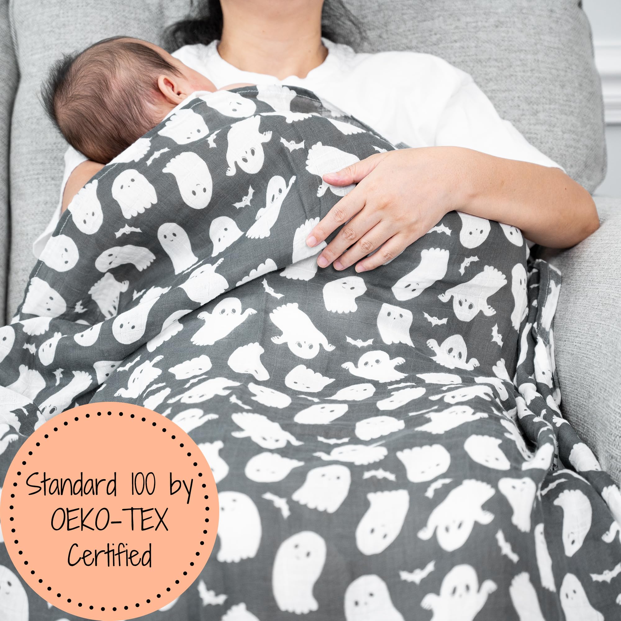 LollyBanks Muslin Swaddle Blankets, 100% Cotton Baby Swaddle for Newborn Boys and Girls, Soft and Breathable 47 x 47 Inches Infant Blanket, Baby Registry Must Haves (Cute Ghost Halloween Print)