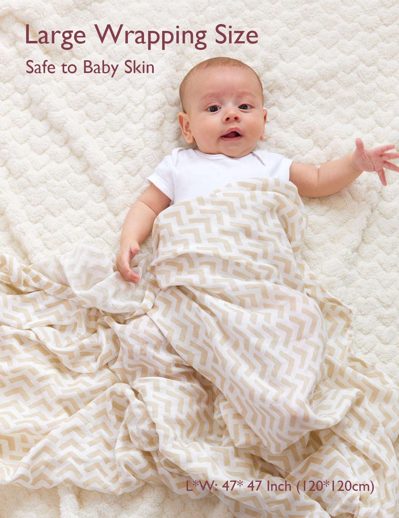 【Large Size Muslin Blankets Can be Folded Creating Different Warmth】 The size of Momcozy 47''x47'' swaddle blanket is larger than most receiving blankets which can help mothers a lot when swaddling babies, super comfortable and stay cool in summer, huge enough and just double or triple it up for another layer of warmth creating a thicker and warmer wrap for the winter. Suitable for all seasons, warm in winter and no hot sleeping in summer.