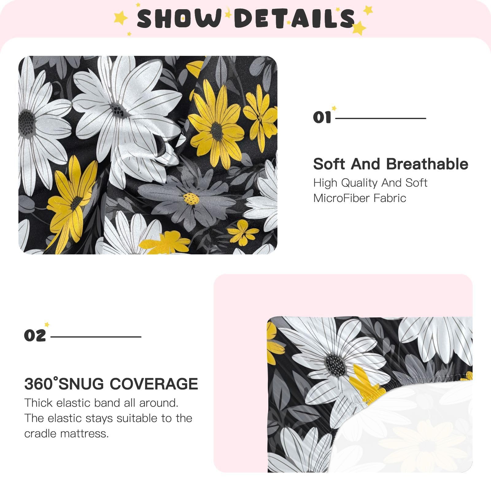 šŸ‘¼ć€Size怑Playard Sheet:39*27*5in(99*68*12.7cm) Crib Sheet:52*28*9in(132*71*23cm)