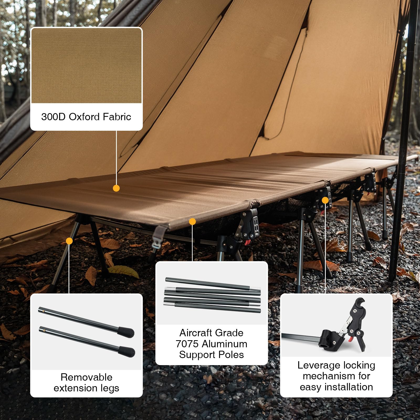 ★ 𝙌𝙪𝙖𝙡𝙞𝙩𝙮 𝘽𝙪𝙞𝙡𝙙 – Made with 300D Oxford fabric that is durable, lightweight, water-resistant, tear and wear-resistant, with aircraft grade aluminum support bars & legs, our sleeping cot provides up to 400 lbs (180 kg) load capacity