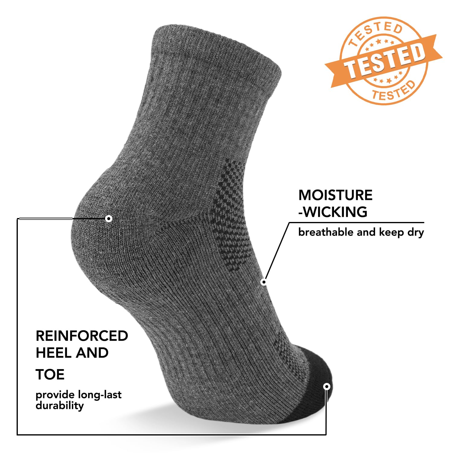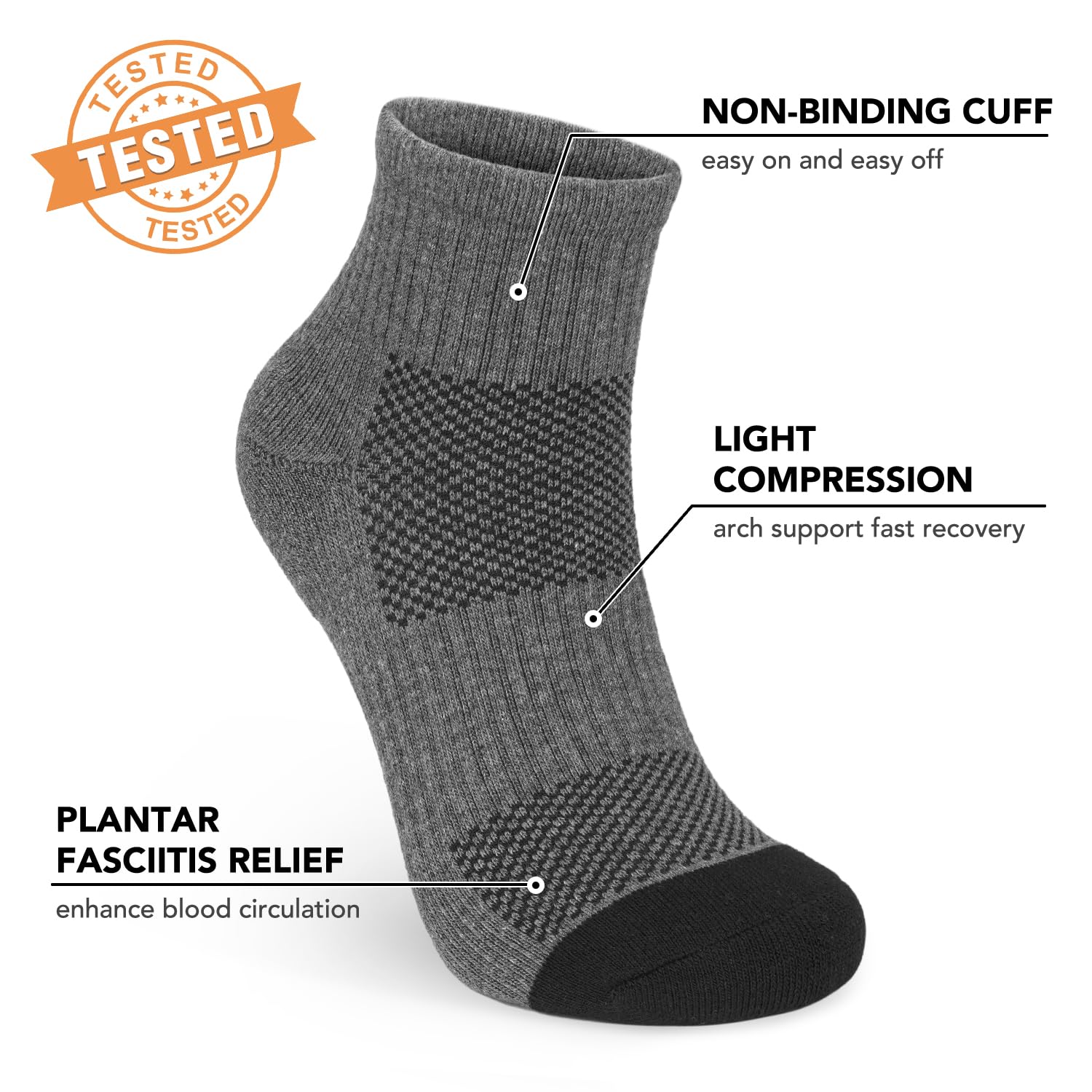 🆕CUSHIONED & MESH DESIGN -- Athletic ankle compression socks for women men can also be more comfortable to wear than traditional socks, as they provide a snug, supportive fit that can help prevent blisters and other foot injuries. The cushioned plantar fasciitis relief socks can also be made from breathable materials that help wick away moisture, keeping the feet cool and dry.