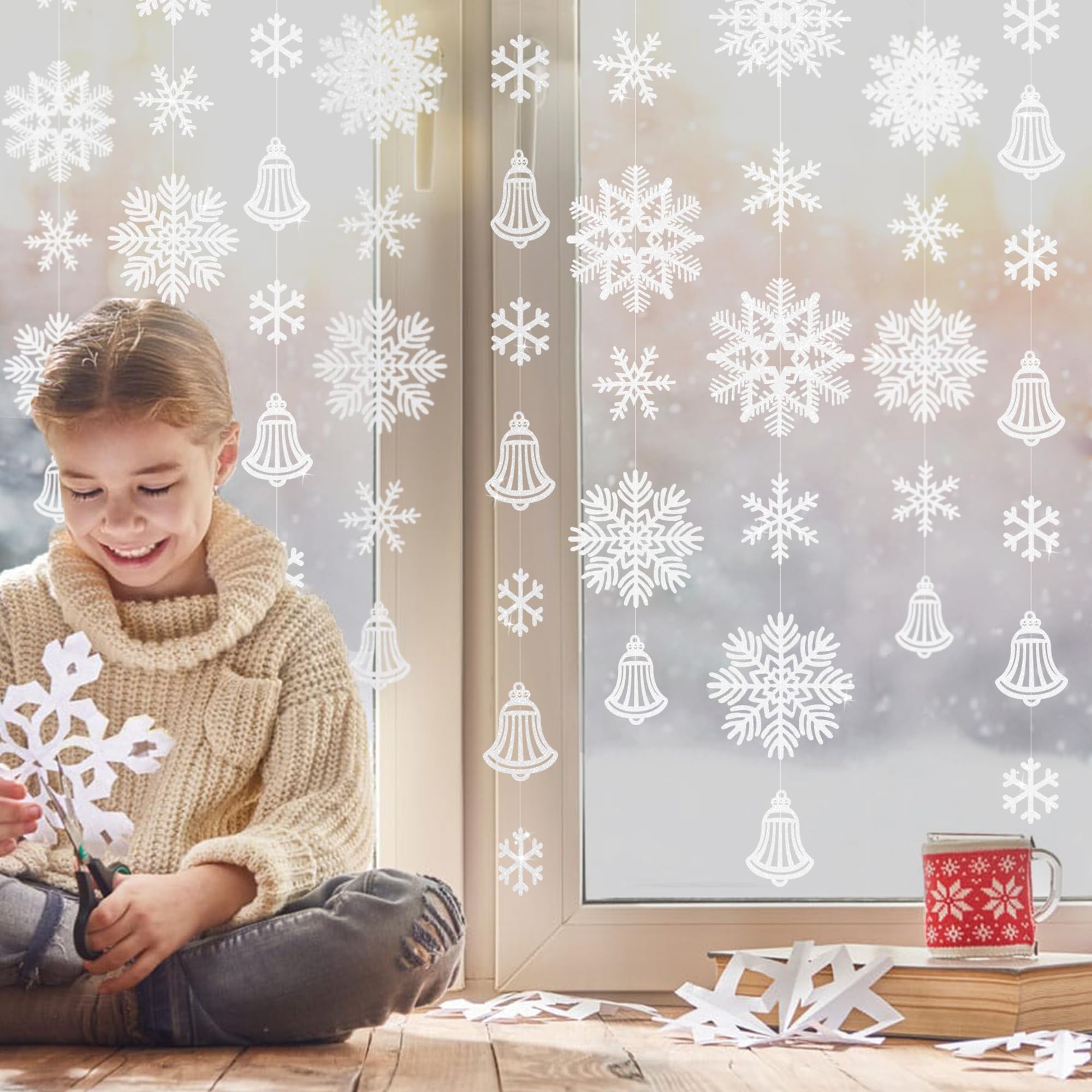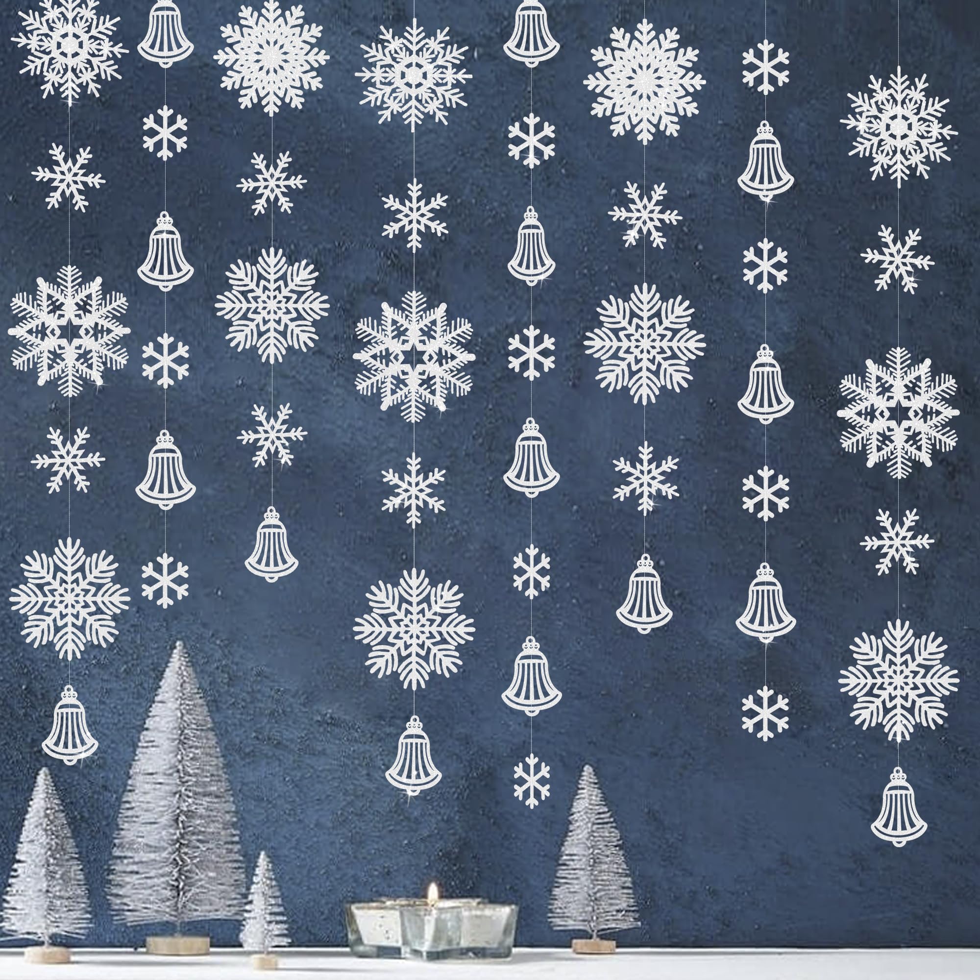 ❄PACKAGE CONTAINS-This white winter wonderland decorations kit include 9 set of snowflake bell hanging party garland banner,Total 40 feet.