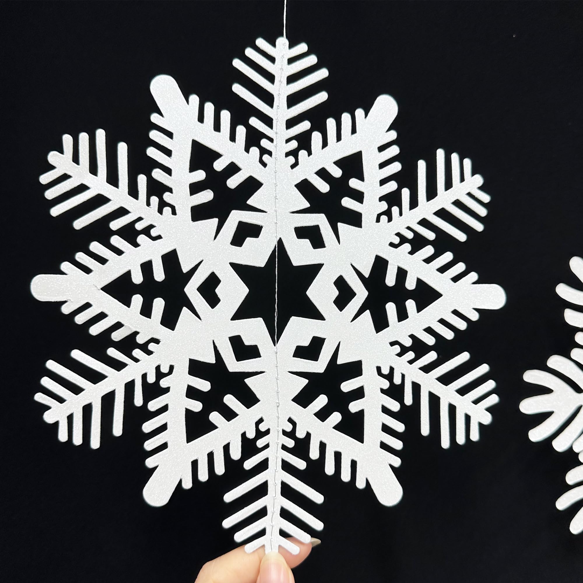 ❄ENVIRONMENTAL MATERIAL-These white snowflakes garland streamer are made of high quality double sided white glitter paper,carefully hand-made and machine-sewn together with thread.durable and reusable.