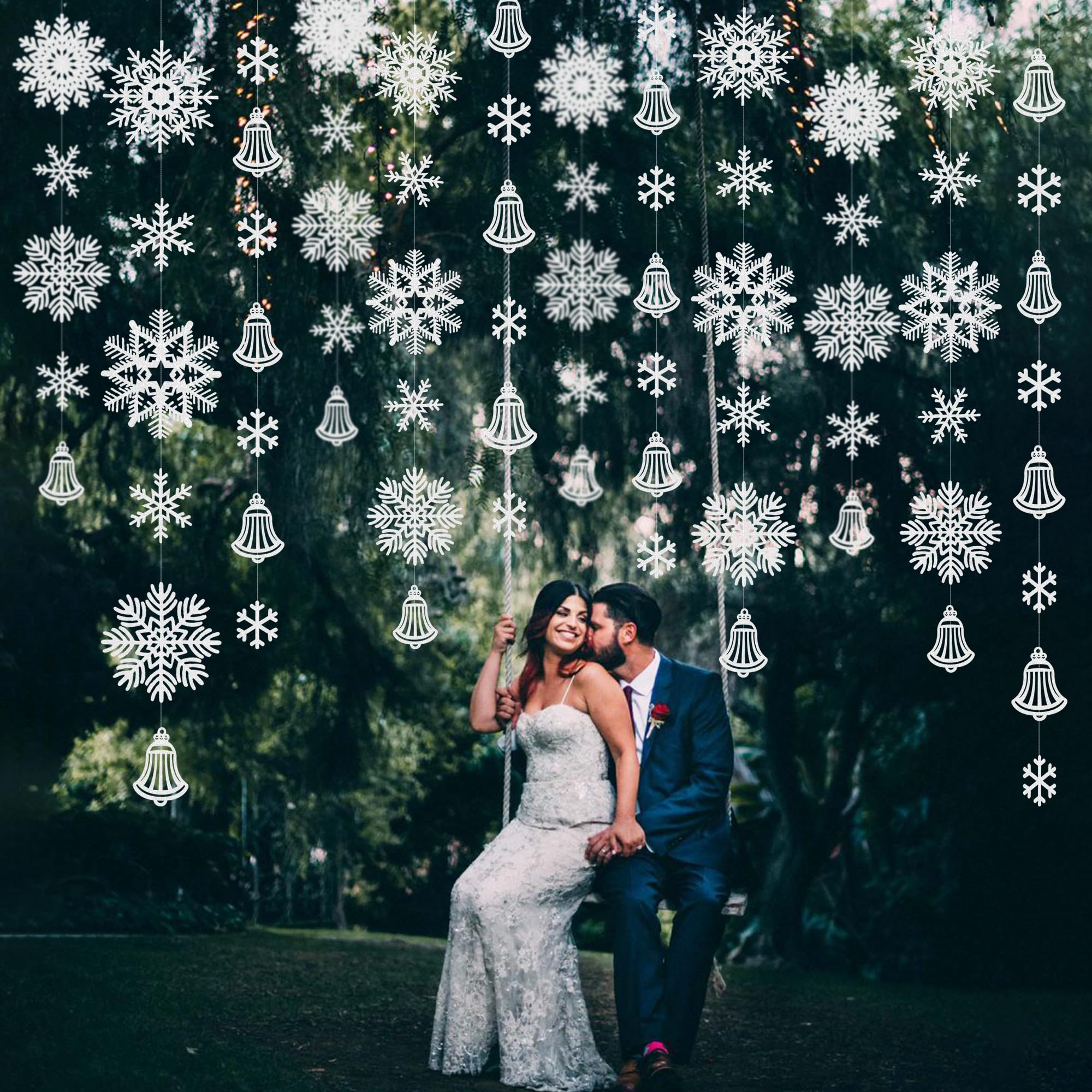 ❄USING OCCASION - These glitter white bells snowflakes hanging backdrop garlands are not only used for winter wonderland frozen xmas holiday theme party but also great for decorating nursery,classroom,kindergartens,office,home,garden,window.Perfect for baby shower,birthday,wedding shower,bachelorette, bridal shower,engagement,anniversary hen party decorations,etc.