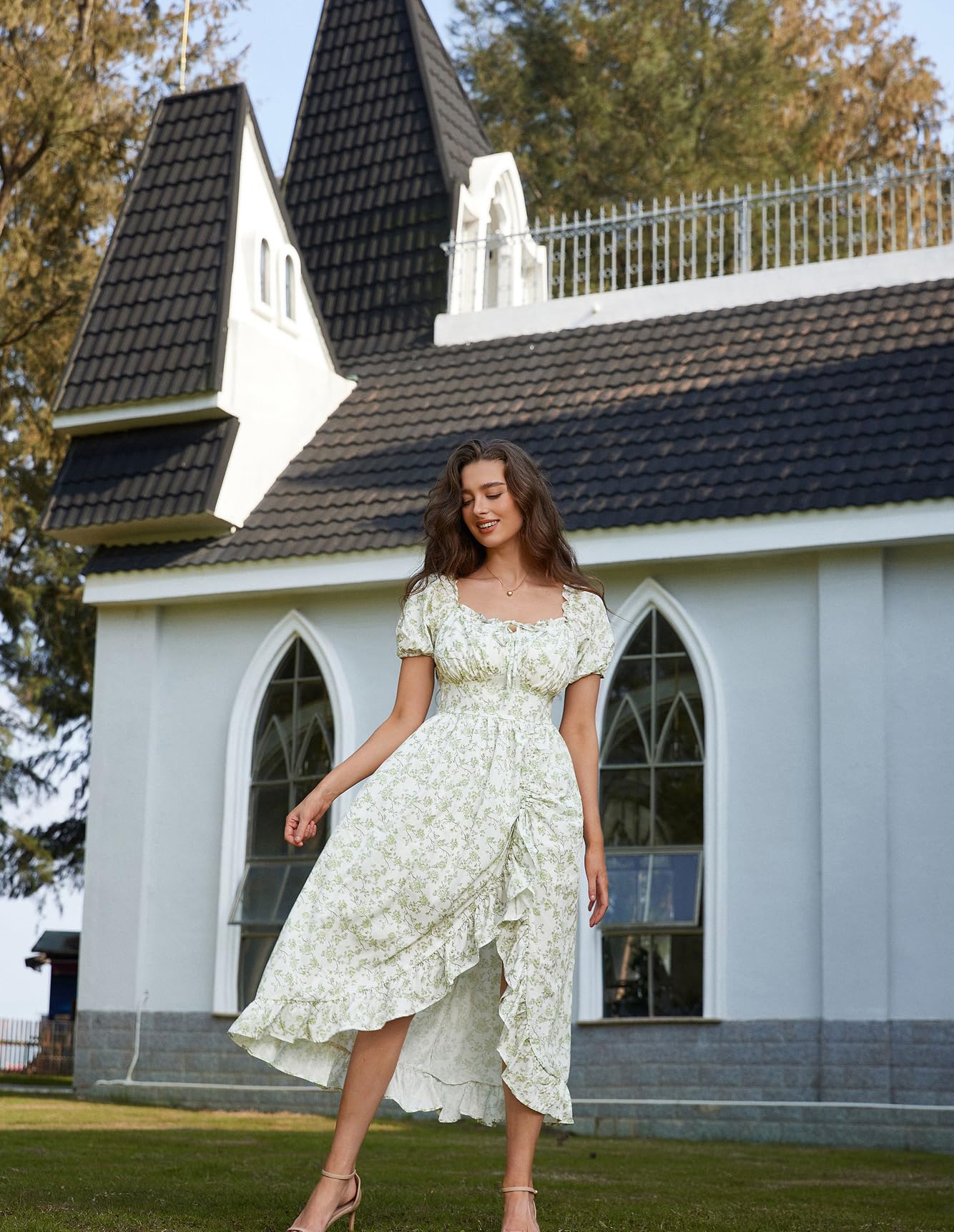 🌼【Styles】 Cottagecore floral dress, Renaissance fair outfit, Peasant Costume, Victorian Dress, Empire waist dress, High low dress, Fairy dress, Ruffle dress, Flowy dress, Summer dress