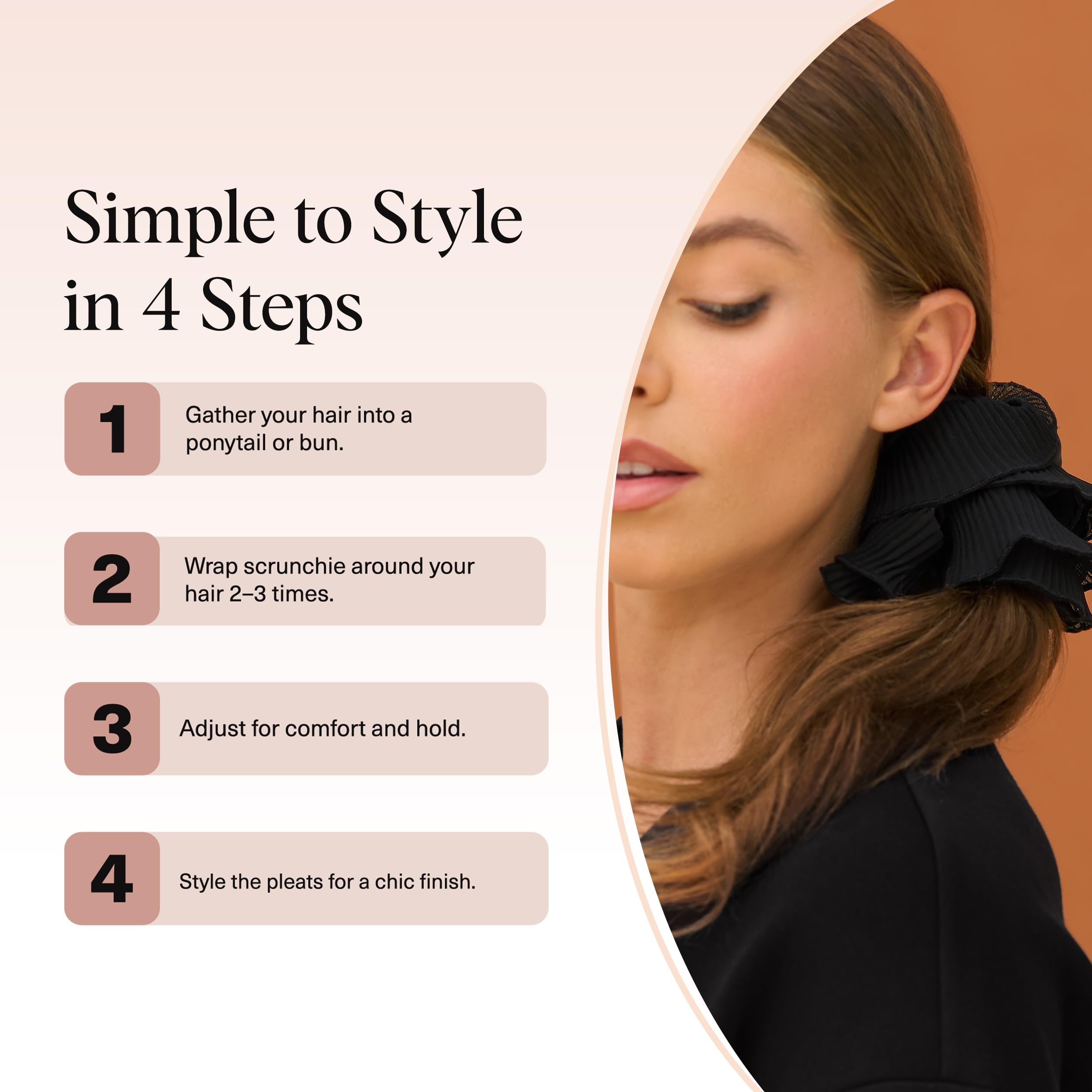 VERSATILE EVERYDAY WEAR: Whether you need scrunchies for women to style work looks, class outfits, or Halloween costumes, this pleated piece fits any occasion. Ideal for ponytail holders, half-ups, or low buns, it provides the reliable hold of quality hair ties while remaining gentle on strands. Add it to your collection of elastic hair ties and favorite hair accessories for women for year-round chic.