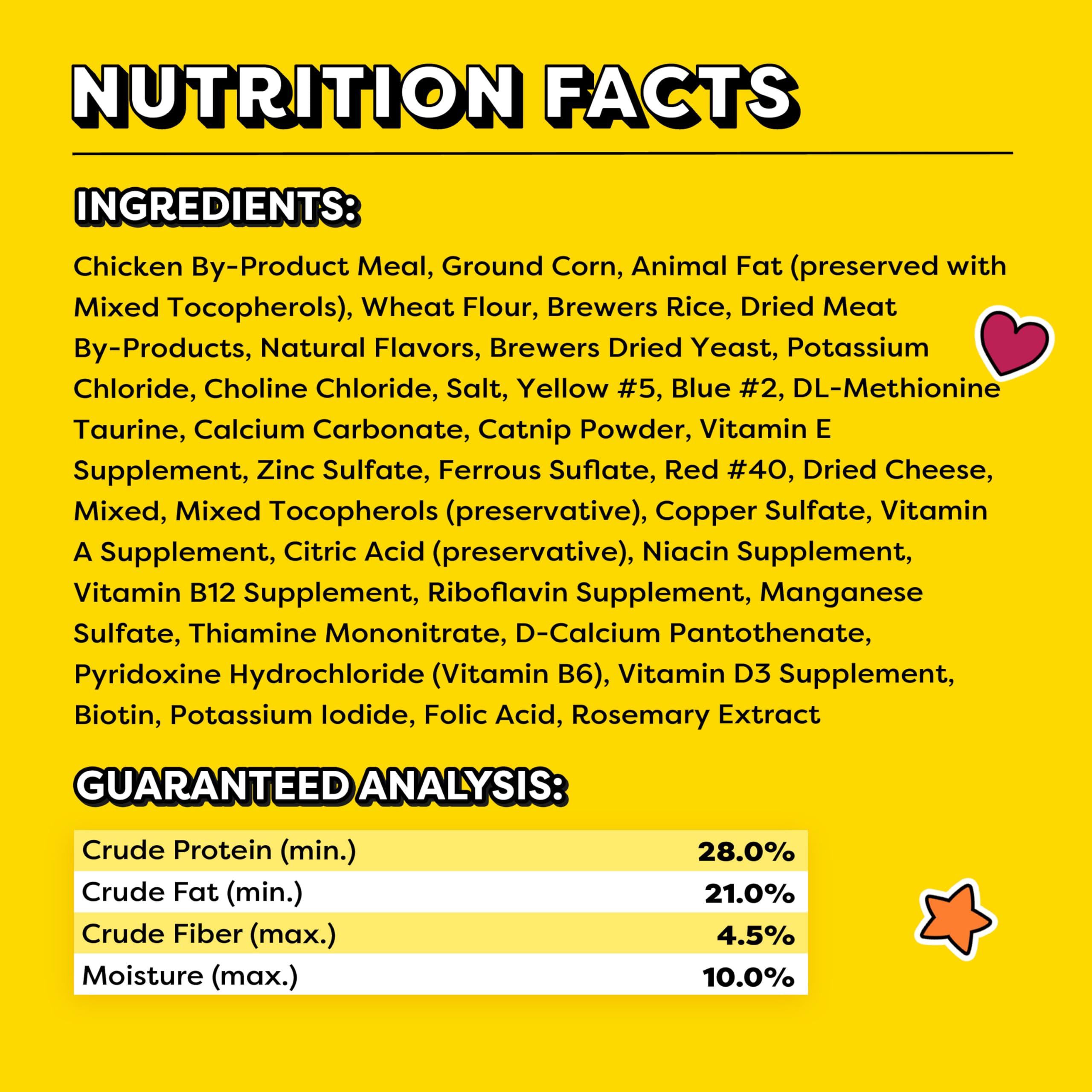 Convenient Stay-Fresh Pouch: Crunchy cat treats come in a resealable pouch for easy treating and to keep your cat's paws off the cat food topper when you're not watching