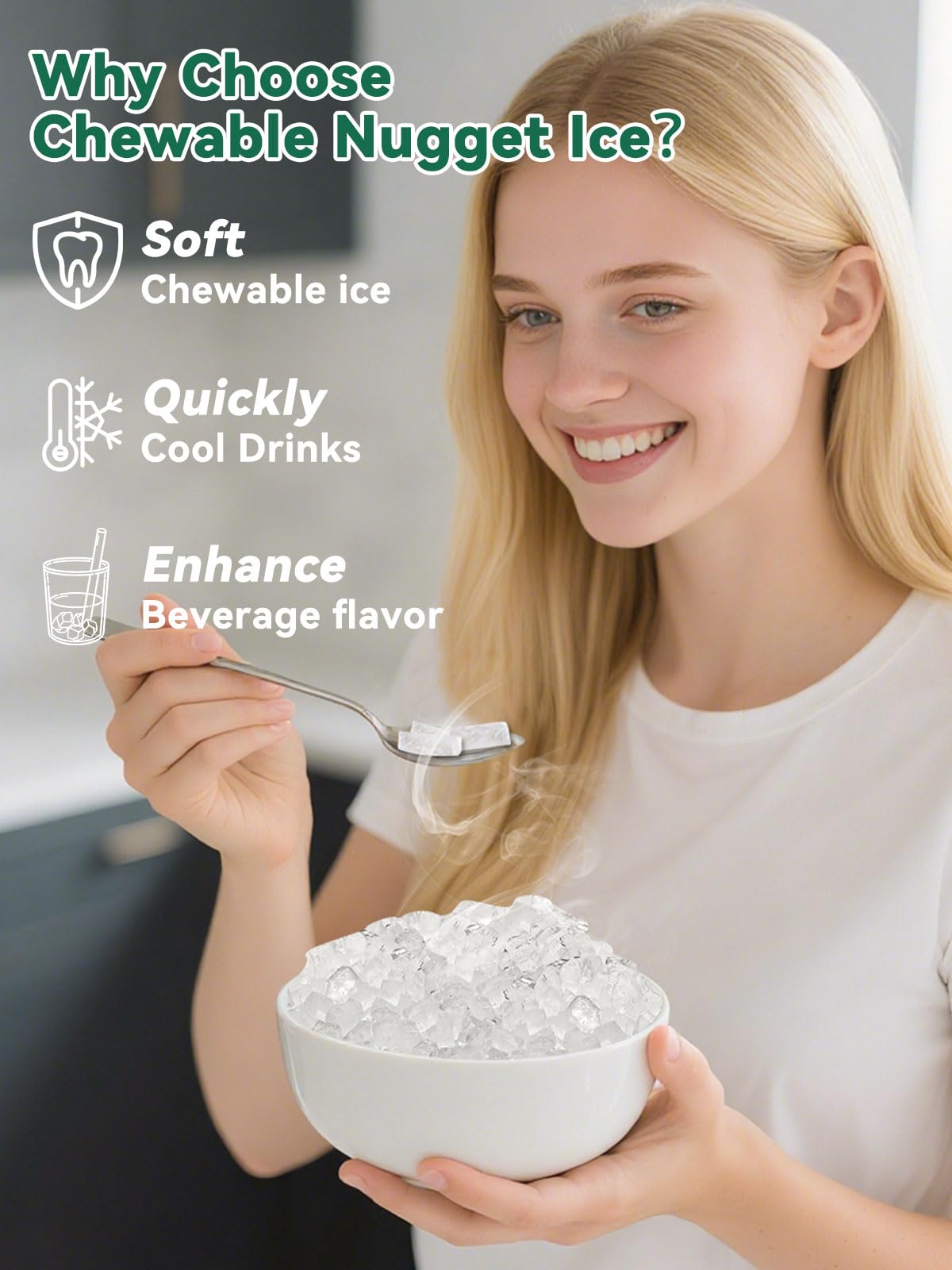 Soft Nugget Ice โ Gentle on Teeth, Healthier Choice. If you love chewing ice, the RAPSUAR Commercial Nugget Ice Maker is your perfect healthy choice. Specially designed to create soft, crunchy, and delicate nugget ice, itโs light on the teeth and helps avoid the enamel damage caused by traditional hard ice. Whether itโs daily hydration, juice, cocktails, or soda, every sip becomes more refreshing and enjoyableโletting you indulge in flavor while caring for your oral health.