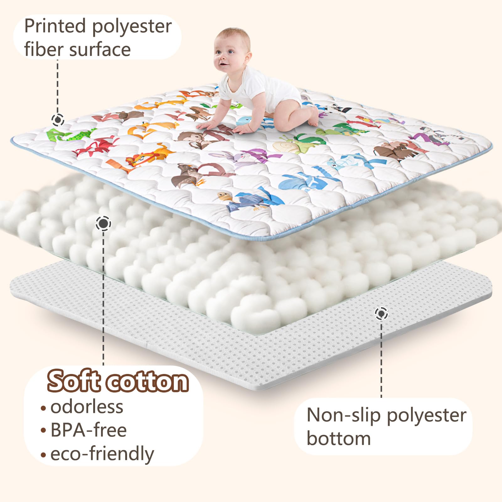 Beavtaens Baby Play Mat, 50x50 Playpen Mat with Super Soft Touch, Activity Mats with Upgraded Anti-Slip Bottom, Machine Washable Crawling Mats for Floor & Picnic (Animal Alphabets)