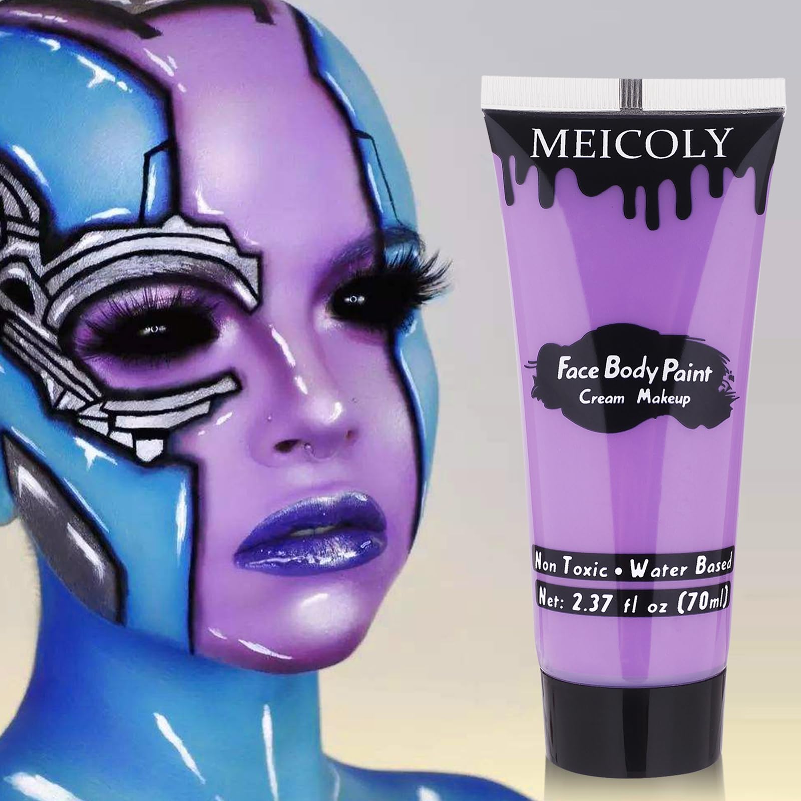 ✔Suit for Many Occasion--- MEICOLY face body paint can be used for face and body. Fit for Halloween Costume theme,fancy ball, parties, club,photoshoot,superhero designs,day of the dead makeup or other more SFX cosplay makeup.Also great purple field day accessories for kids and adults