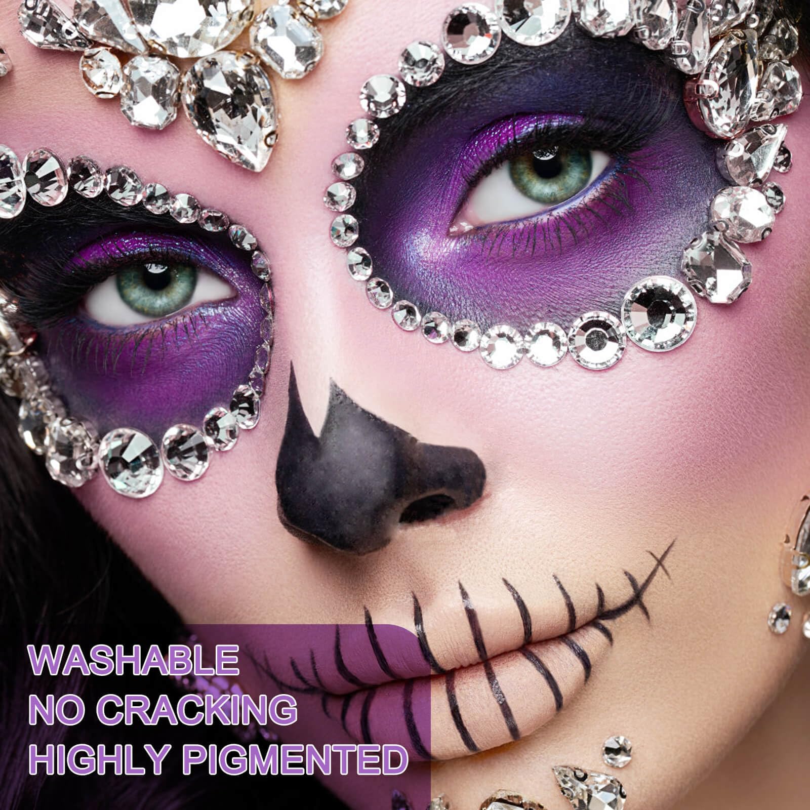 ✔Safe Ingredient: MEICOLY face body paint is infused with gentle and safe formula,it is Paraben Free and Gluten Free,not itch,crack or irritate the skin,safe for kids and adults to do face painting.Not tested on animals,the ingredient is vegan and cruelty-free,gentle face paint for sensitive skin.Notice:As with all cosmetics we advise that a small skin patch test is done before applying as everyone's skin is different