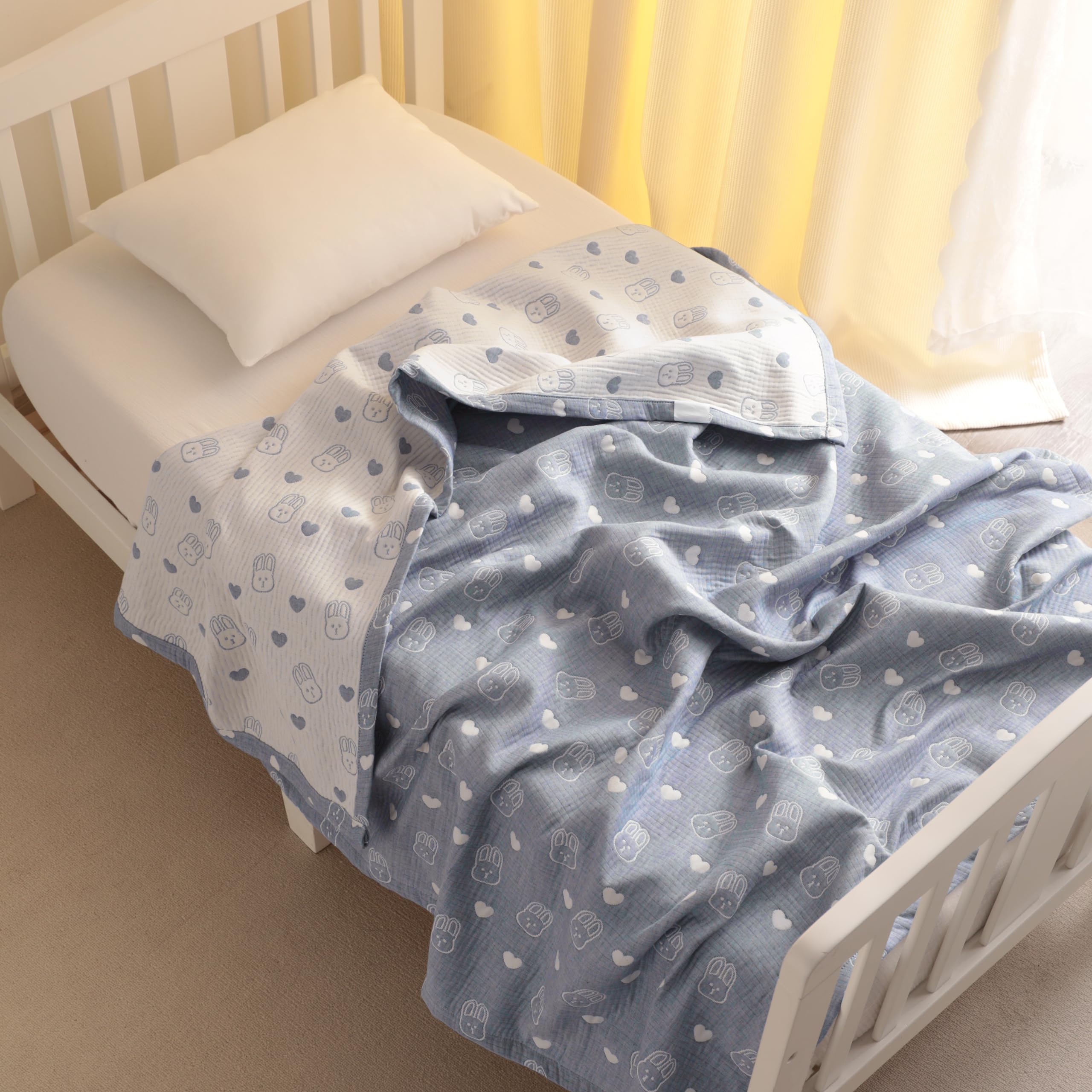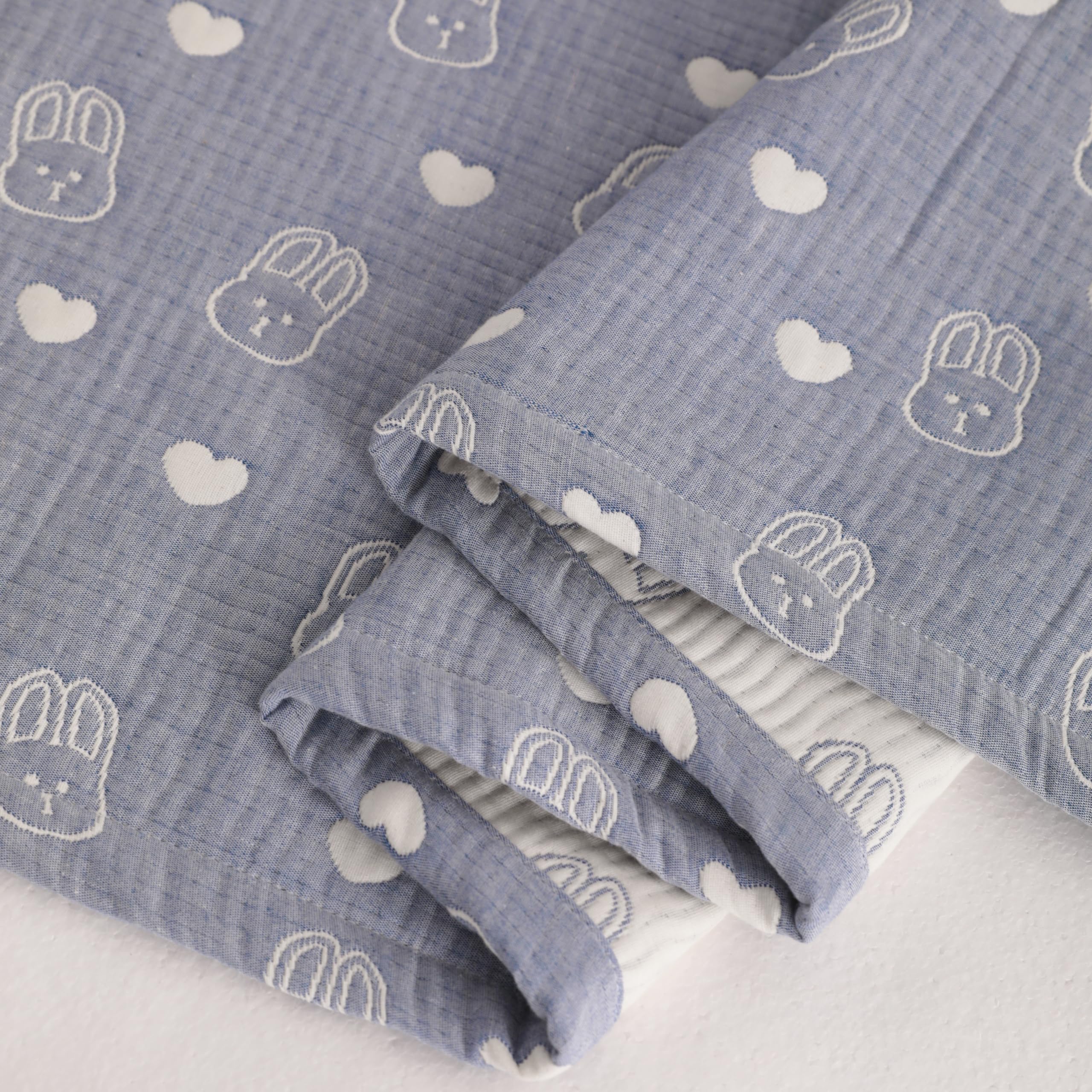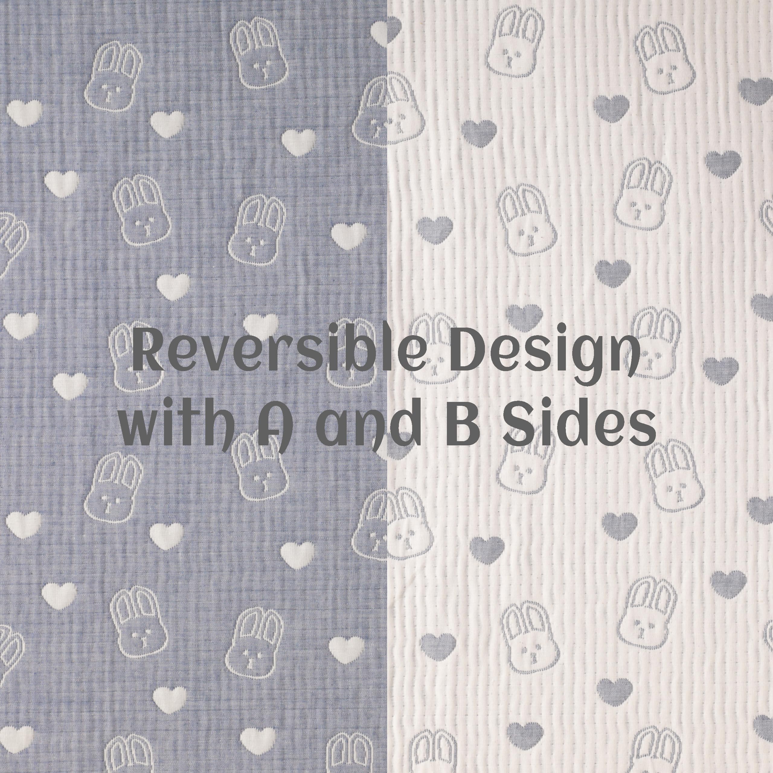 Classic reversible design: This blanket is designed reversibly which is very convenient and durable. The front is the blue background dotted with white rabblt patterns. The back is the white background dotted with blue rabblt patterns.
