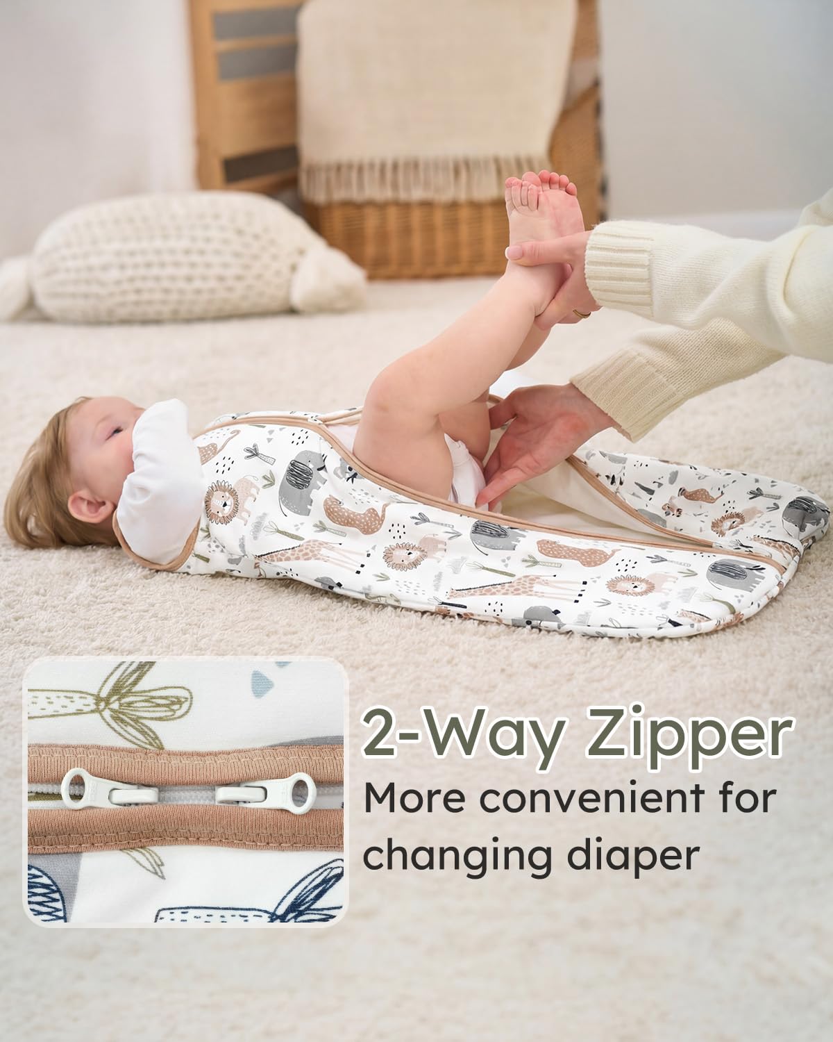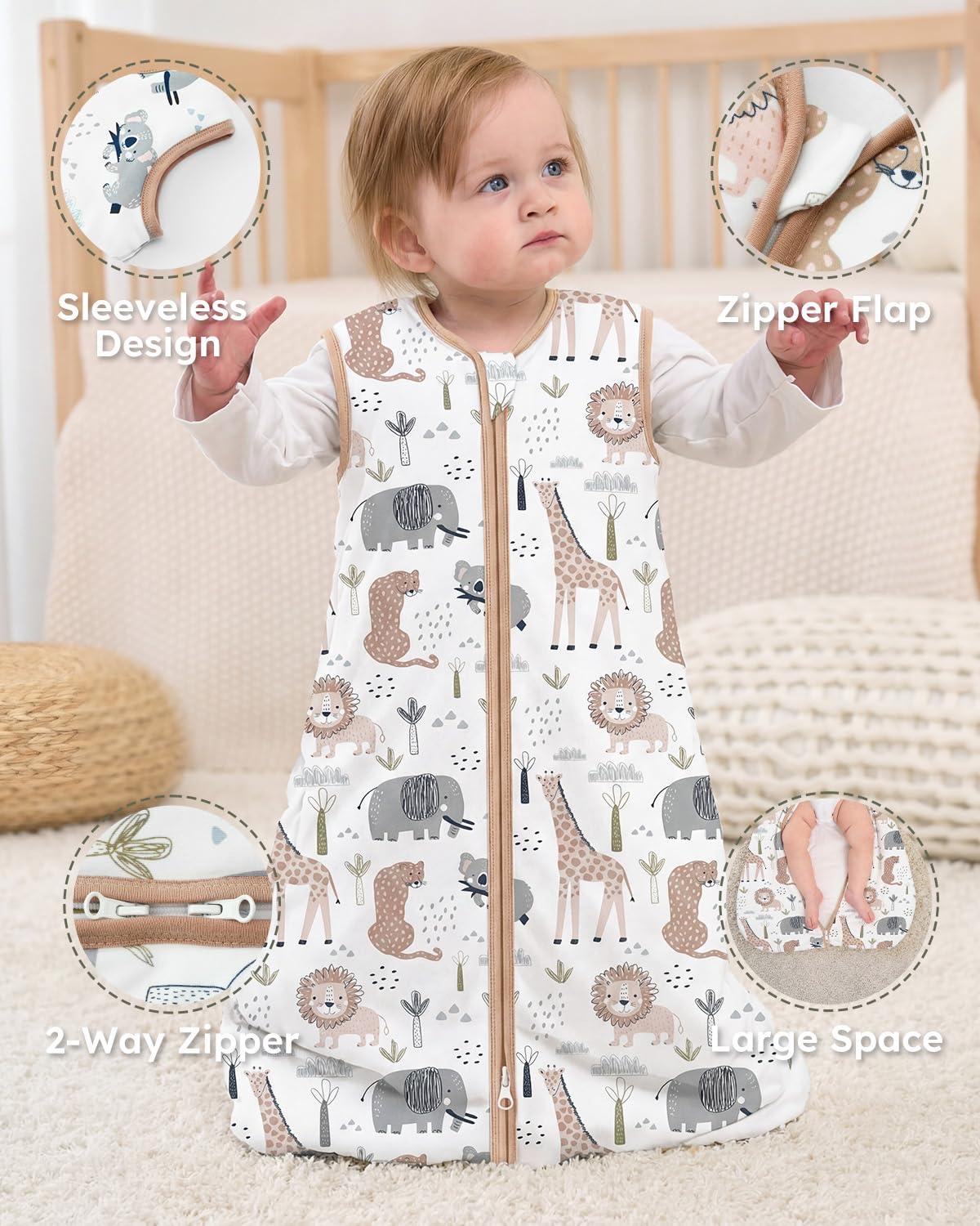 2-Way Zipper and Available Sizes: The top-grade double zipper allows unzip from the bottom for fuss-free diaper changes without disturb baby during the night, and design with zipper garage to protect baby’s face from chafing. There are 4 available sizes for this baby sleep sacks; S for 0-6 Months. M for 6-12 Months. L for 12-18 Months. XL for 18-24 Months.