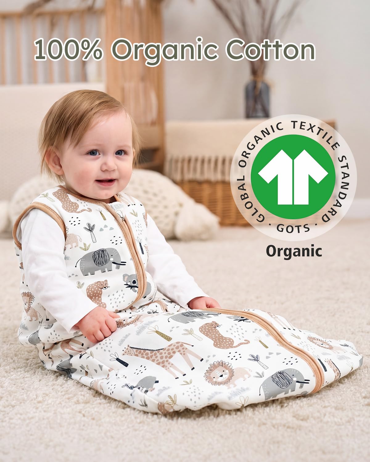 Made of 100% organic cotton layers and soft polyester filling , soft and breathable, guaranteeing the utmost comfort and the protection of infant's sensitive skin. Yoofoss sleep sack is certified to meet Global Organic Textile Standard (GOTS), dedicating to ensure your baby's safety and coziness.