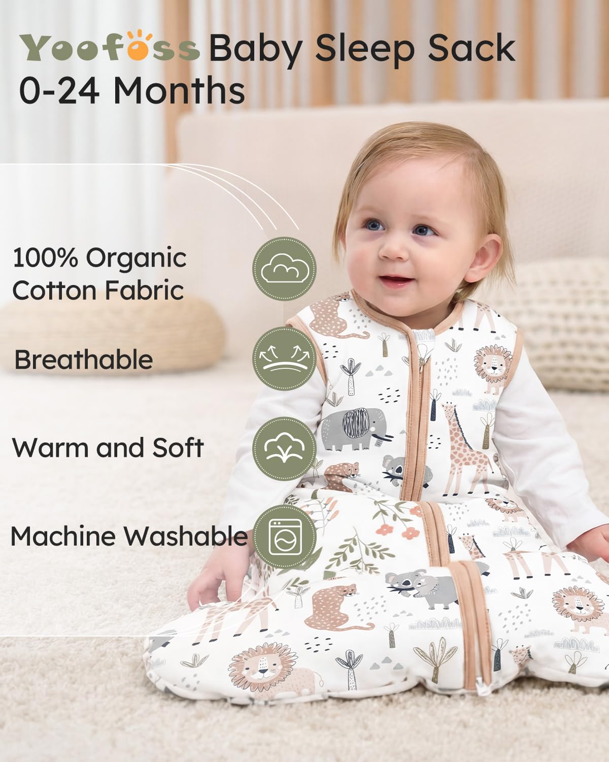 Safety Comes First: Made of 100% organic cotton layers and soft polyester filling , soft and breathable, guaranteeing the utmost comfort and the protection of infant's sensitive skin. Yoofoss sleep sack is certified to meet Global Organic Textile Standard (GOTS), dedicating to ensure your baby's safety and coziness.