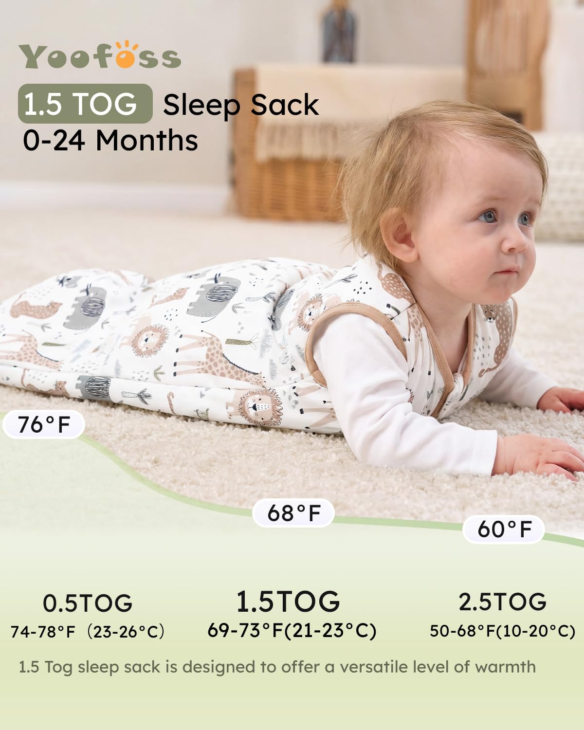4-Season Use: 1.5 Tog sleep sack is suiable for moderate temperatures from 69 to 73°F as an ideal option for autumn,early winter and spring or taking a nap in air-conditioned rooms during the summer, keeping your baby snug and warm.