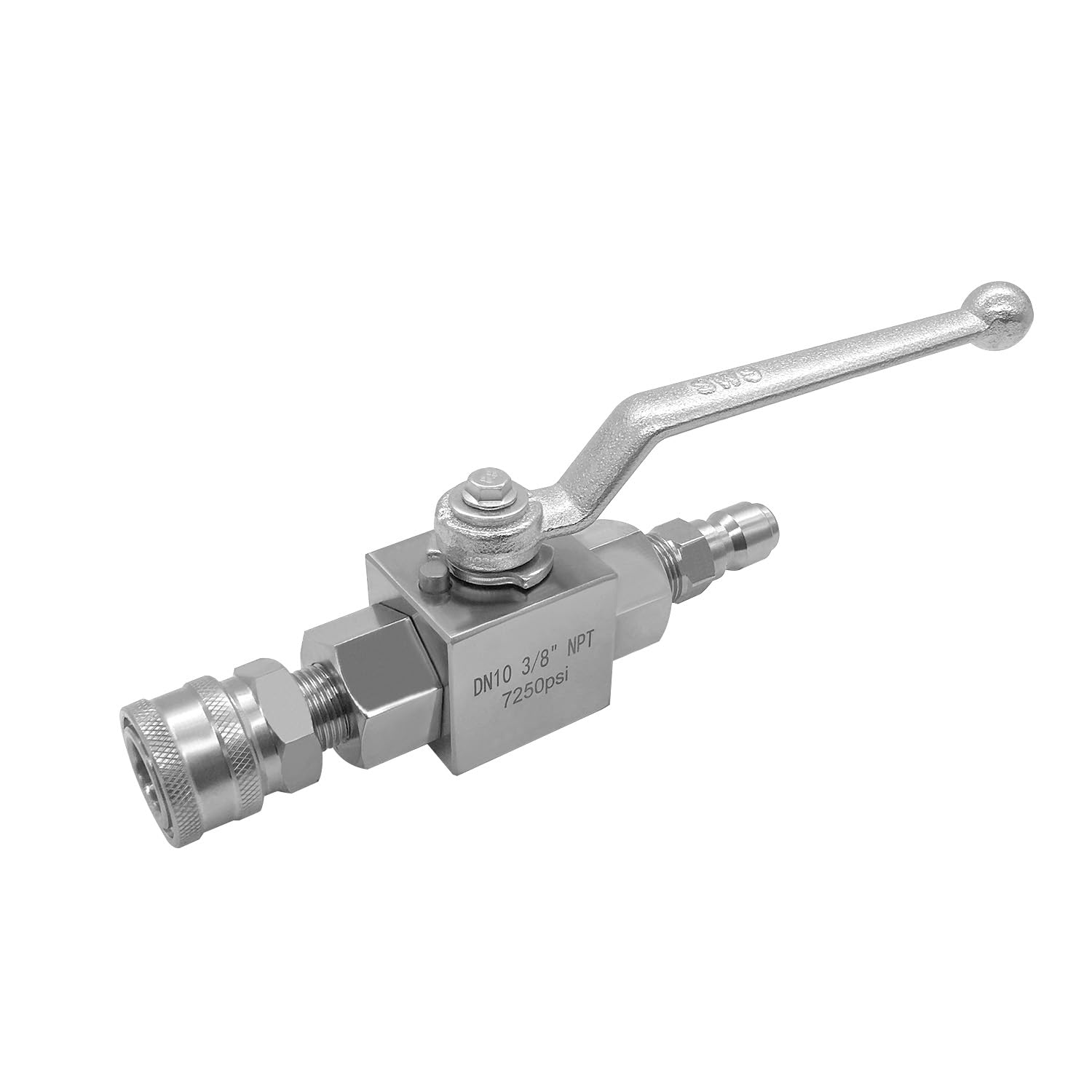 Includes:The high pressure ball valve has a 3/8 inch quick connector and a 3/8-inch quick connector plug