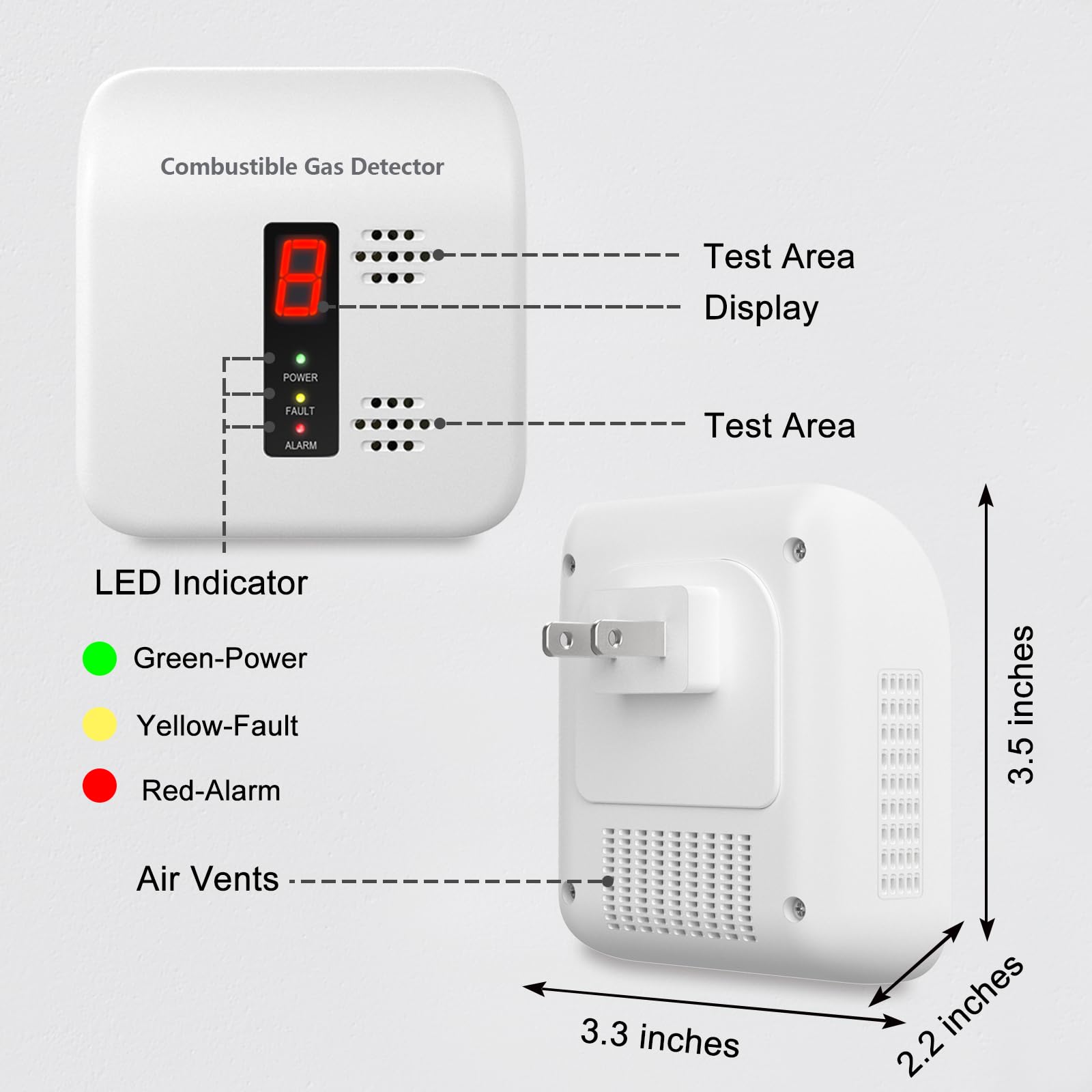 Easy to Install :Y401 Natural gas detector adapts excellent & simple industrial design. Just plug in simply plug-in to a standard, 120V outlet in your home, the natural gas alarm can function normally