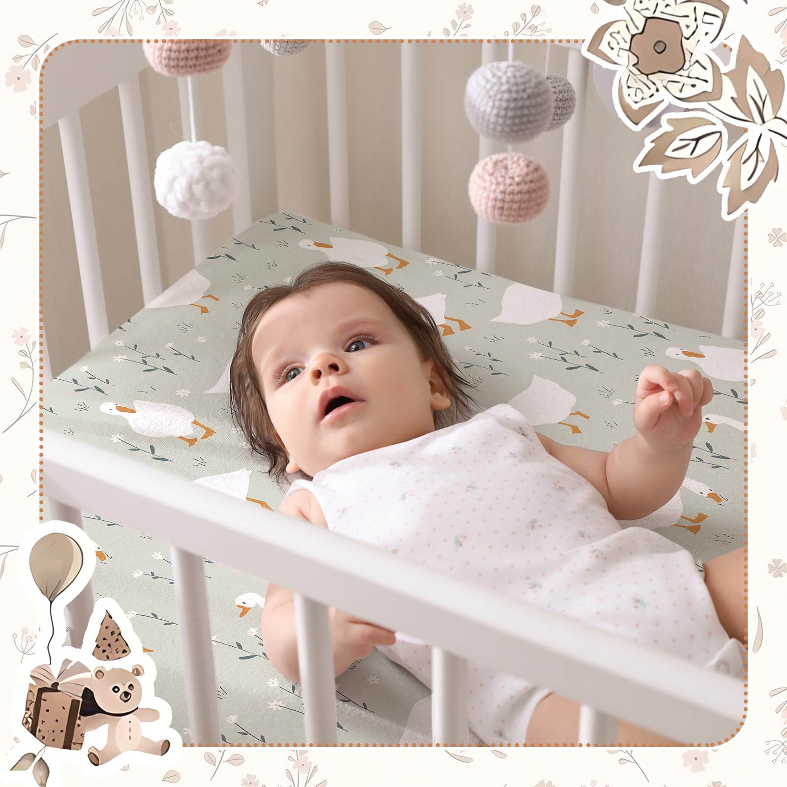 Distinctive Style with Varied Designs: this crib comes in 4 styles, including cute flower, silly goose themed sheets; This helps spark the imagination while giving you a variety of options to make the nursery look lovely and vibrant, adding a warm feel to your boys' and girls' Spaces