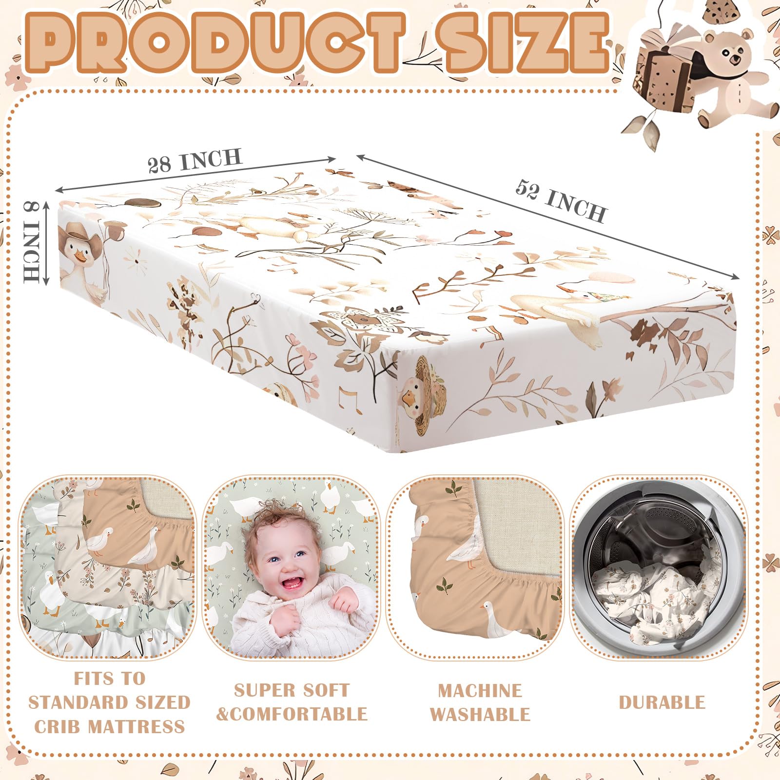 Ideal Fit with Standard Size Crib: the package includes 4 silly goose crib sheets specifically tailored to fit a standard size crib or crib mattress of 52'' x 28''; Each sheet comes with full elastic trim on all 4 sides and is secured with pockets of approx. 8 inches deep for easy usage; This quantity provides flexibility to always have a fresh sheet handy