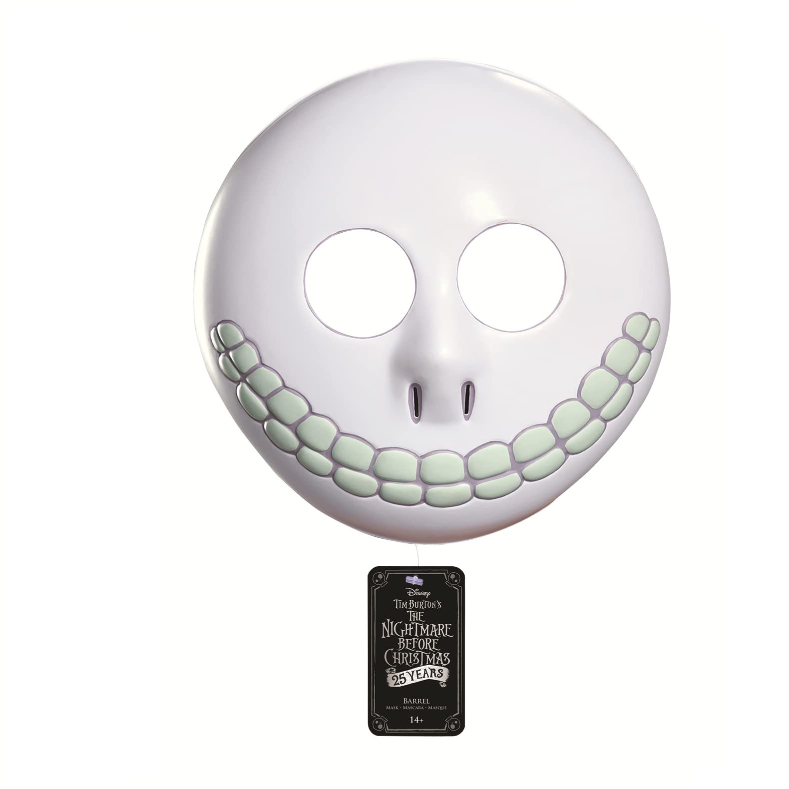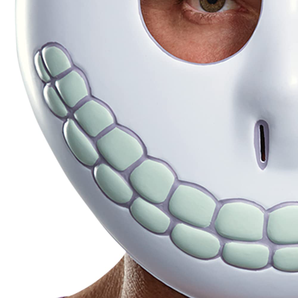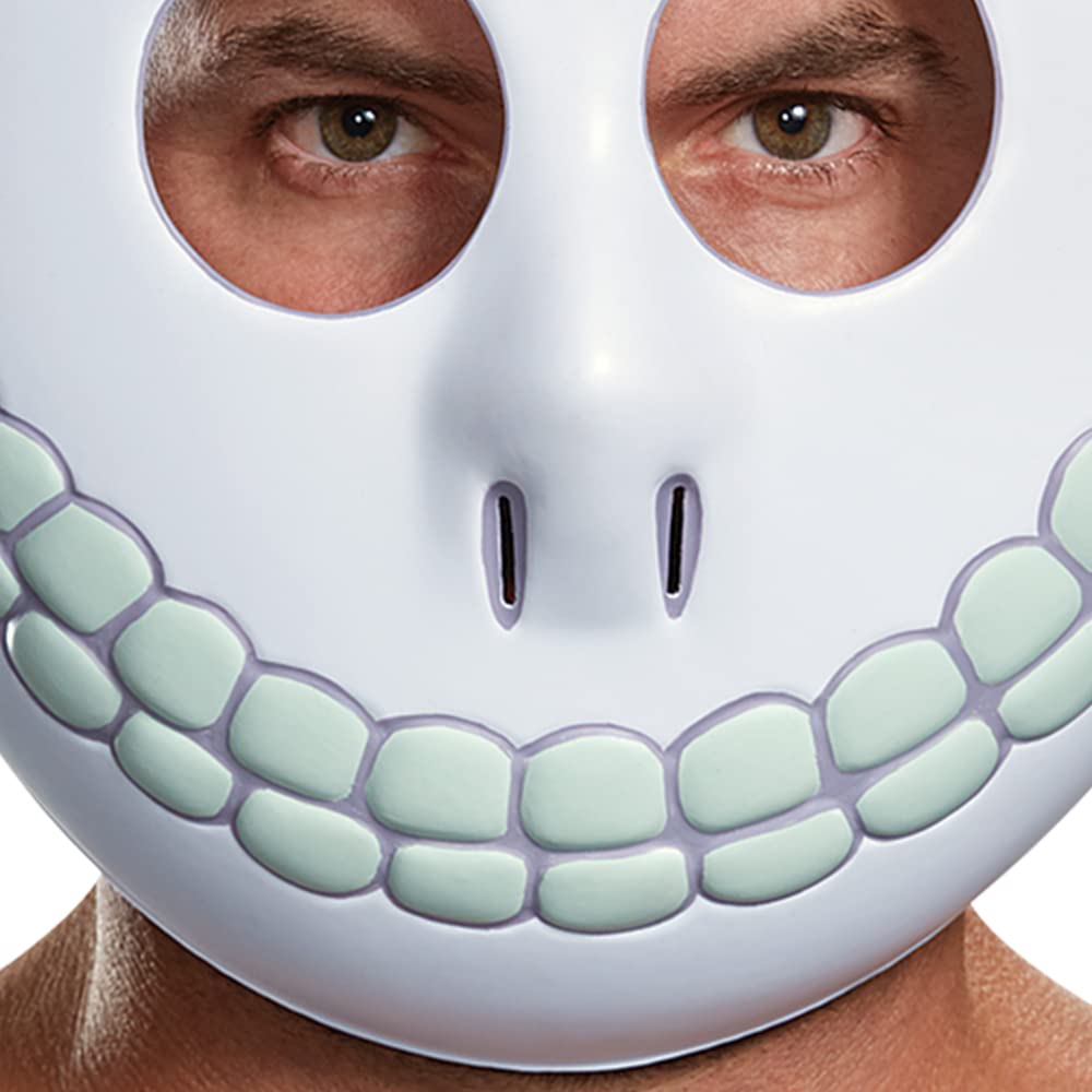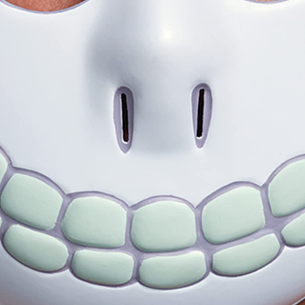 Description A Bone-ified Classic Who knew that Halloween Town would provide such wild and crazy adventures? Well, Tim Burton certainly had an idea. Whether you've loved The Nightmare Before Christmas since it came out in the early 90's or you are just getting into it, you're probably just as wrapped up in the macabre world that Burton created as we are. This strang land has everything a movie could ask for from somewhat terrifying yet somehow adorable trick-or-treating children to the romance of a hard-willed ragdoll shut up in the castle of her creator. That's not to mention the twisting landscape of the world itself. The puppeteers manipulated their characters on two-hundred sets, using trapdoors so they couldn't be seen by the camera. With all the little details that were put into the movie, people are in danger of missing the adorable henchmen of the Oogie Boogie Man: Lock, Stock, and Barrel. Without all these little heathens, Santy Clause wouldn't have gone through his horrible ordeal. Product Details This mask will make you look just like the youngest of the trick-or-treating trio, Barrel. The large eye holes and wide skeletal grin hint at a future ambition of holding of the Pumpkin King title. If you want to go beyond the mask and fully transform, pair this mask with slicked back green hair and a skeleton suit and you'll be ready to knock on some doors! Craft, Cunning, and Mischief Now you and your cohorts might not be traveling by bathtub but we're sure you three can scare up some mischeif. That's what Halloween is all about! Jack Skellington may have made a mistake when he let you in on his Christmas plot but that's just because you three specialize in one area. What is that, you ask? Why, having a happy Halloween, of course! - Mask