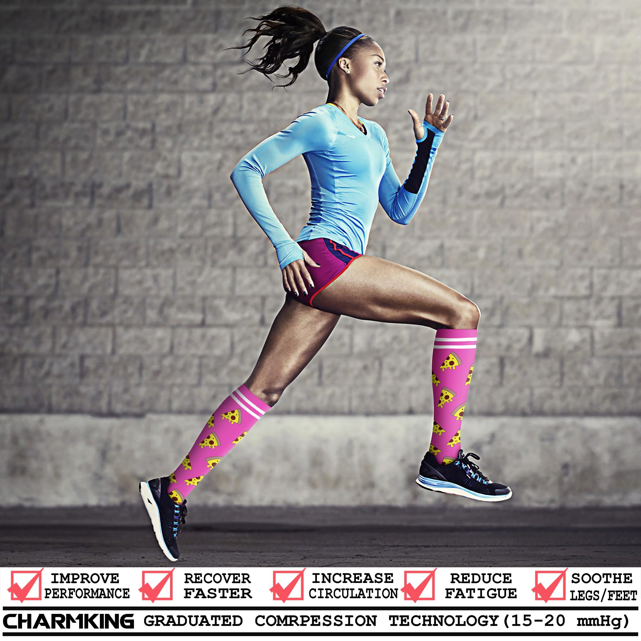 COMFORTABLE MATERIAL AND CAREFUL CONSTRUCTION - CHARMKING knee high compression socks' material are upgraded with nylon percentage from 40% to 85%, Delivers 360-degree stretch for greater flexibility and durability. Breathable high performance fabric keeps an optimal temperature. We are confident that you will choose it!
