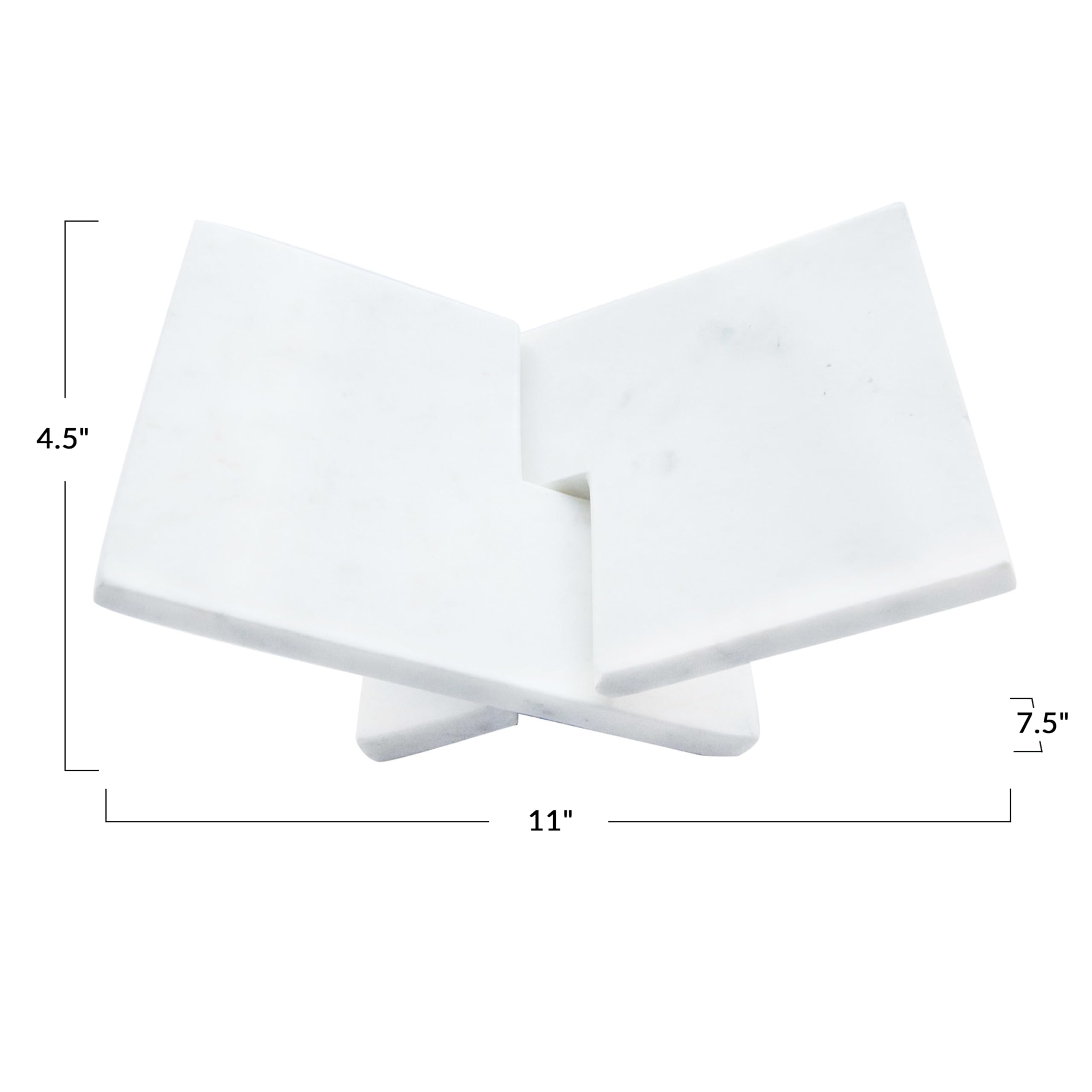 A rectangular and sturdy marble book holder that has a white color and a smooth finish