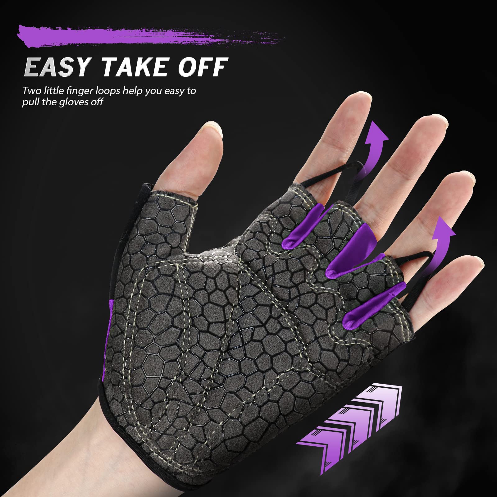 Two little finger loops help you pull the gloves off without turning them inside out,towel cloth on the thumb helps to wipe sweat