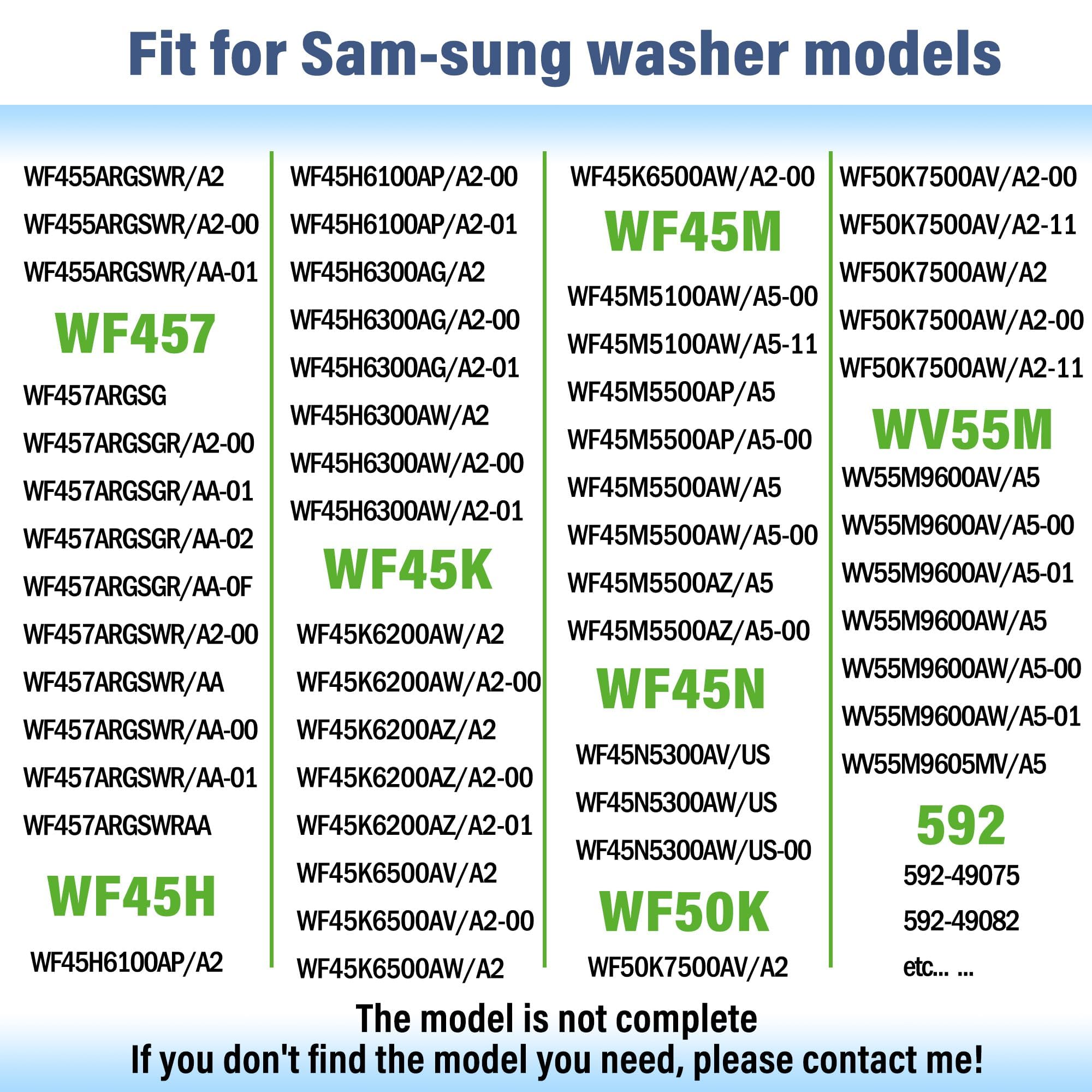 Properly Fit for Sam-sung washer 592-49075, 592-49082,592-49087, 592-49127, 592-49145, 592-49147, 592-49155,592-49157,592-49182,592-49376,592-49396, 592-49466, 592-49496, WF330ANB/XAA,WF330ANB/XAA-00,WF330ANB/XAA-01,WF330ANB/XAA-02,WF330ANB/XAA-03 WF330ANB/XAA-04,WF330ANB/XAA-05,WF330ANB/XAA-06,WF330ANB/XAA-07,WF350ANW/XAA,WF393BTPARA/A1,WF393BTPAWR/A2,WF393BTPAWR/A1,WF395BTPASU/A1,WF395BTPASU/A1,WF405ATPASUAA,WF405ATPAWR/A2,WF405ATPAWR/AA,WF409ANR/XAA,WF409ANW/XAA,WF419AAU/XAA,WF419AAW/XAA