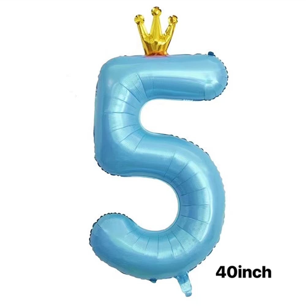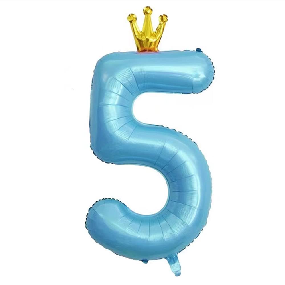 Package includes: 1 * 40 inch blue conjoined crown number 5 balloons,1 straw.