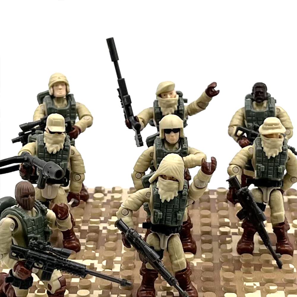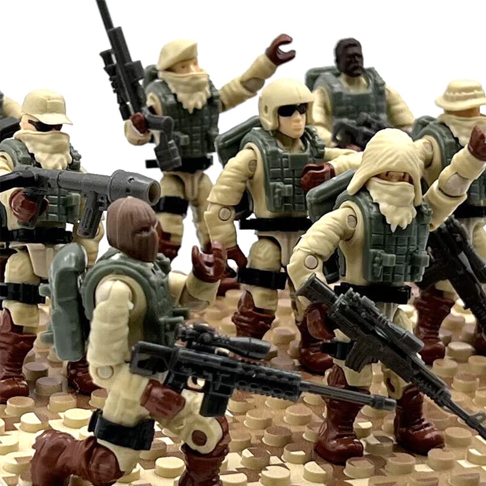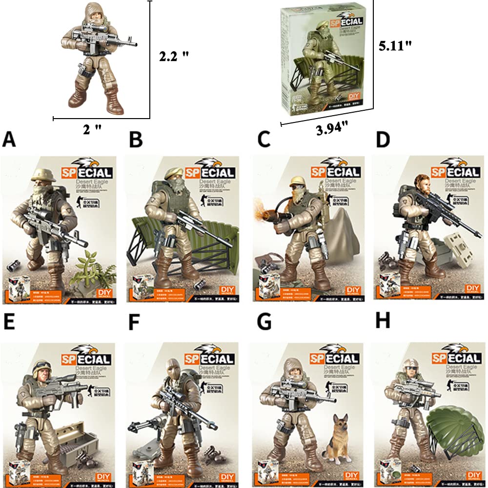 【8 PCS Military Mini Action Figures Playset】Feature 8 packs unique building blocks to build 8 distinct military soldiers building sets, 8 pcs fully-armed soldiers with gun weapons and accessories. You can quickly get started with your military experience with step by step instructions.