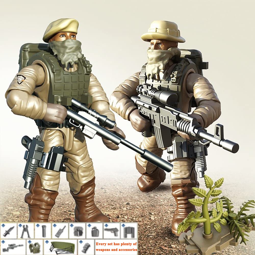 It is the best choice if you want to give a gift to a kid. It is suitable for children over 6 years old, or anyone who have a favorite military hobby. Quality time: With children or friends, building is a wonderful activity. This building block toy will promote your child's hand-eye coordination, divergent thinking, problem-solving skills, and stimulate creativity and brain development. Help children learn the spirit of collaboration and teamwork. Specifications: Model: Desert Eagle Special Team Action Figure Colour: Khaki Figures Size: 2*2.2 inches. Material: ABS, rubber. Warm Notice Since the building blocks toys set contains small parts, please be sure to follow the age guidelines, and supervise your children for a safe playtime. Please sort all parts according to the manual before assembling the model. If there are missing parts, please mark in the manual and click 'Ask question window'. We will send the parts as soon as possible.