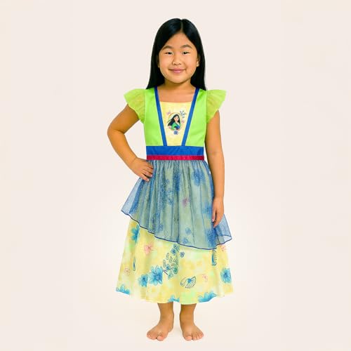 Description Send your little girl off to sleep to dream of becoming a mermaid, dancing with a prince, and going on adventures in the Disney Girlsβ Princess Fantasy nightgown. Your little one will love pretending to be their favorite Disney princess as they sleep and play in this cute, fun, and functional princess gown. Perfect for naptime or amazingly fun princess dress-up, this dress will be the new favorite gown in your girlβs pajama and dress-up clothes. Your little girl can pretend to be any Disney princess from Moana to Snow White in these adorable pajamas. Available in multiple styles and sizes 2Tβ8, each gorgeous nightgown features bright, rich colors and lovely graphics of much-beloved Disney characters. Fancy sleeves, a sparkly overlay, and ruffles make this a true princess gown. This pull-on nightshirt is made from supersoft 100% polyester and is easy to wear. A gentle-cycle wash and low-temperature tumble dry are all that is needed to keep this nightgown looking amazing. This officially licensed Disney product is made with high-quality materials and safety and comfort in mind. To ensure maximum comfort and safety, please choose the right size for your child to avoid clothing that is too long or too loose. These pajamas are manufactured in accordance with all clothing safety standards and are flame-resistant. Let your child put on these fun pajamas and live out their adventures while they sleep or play.