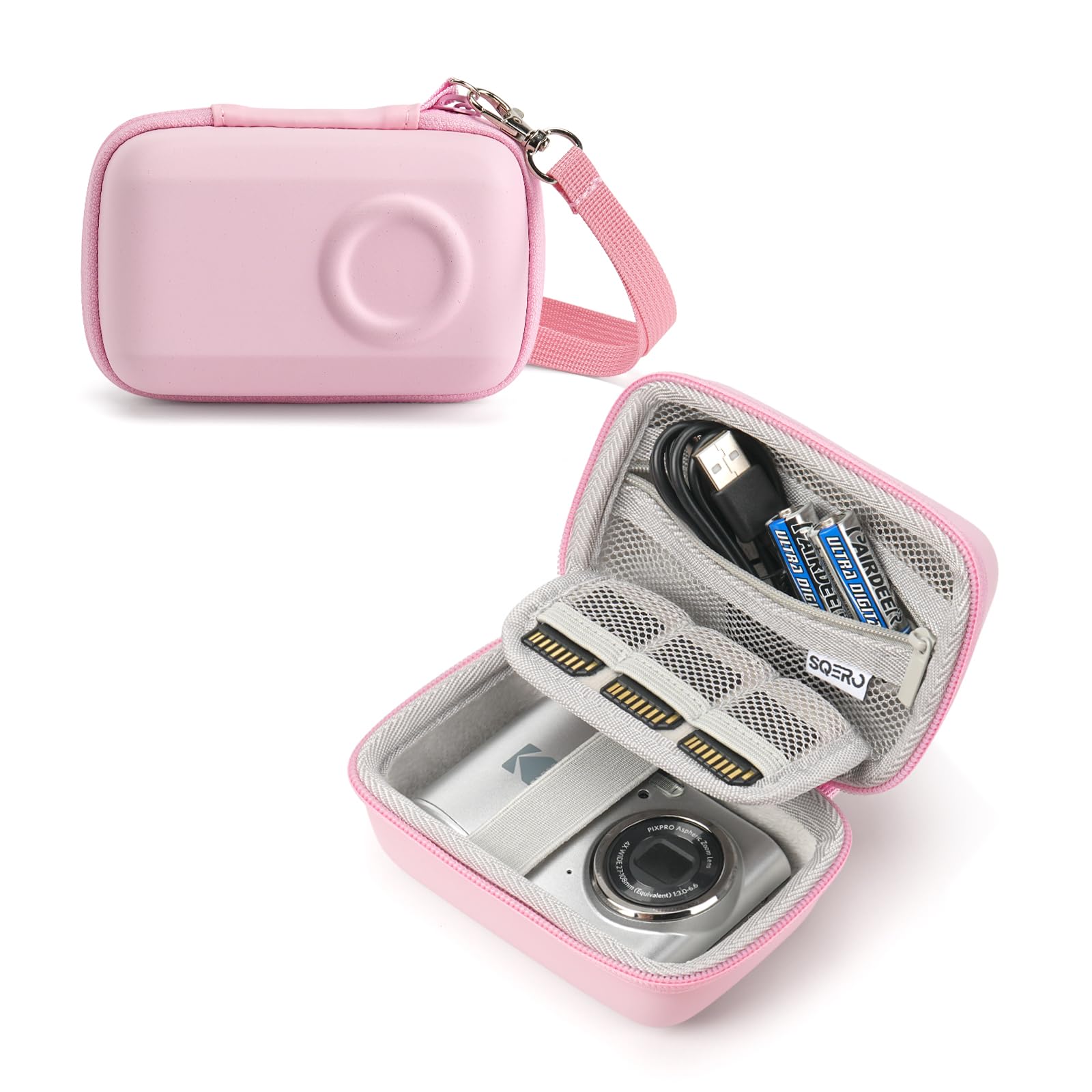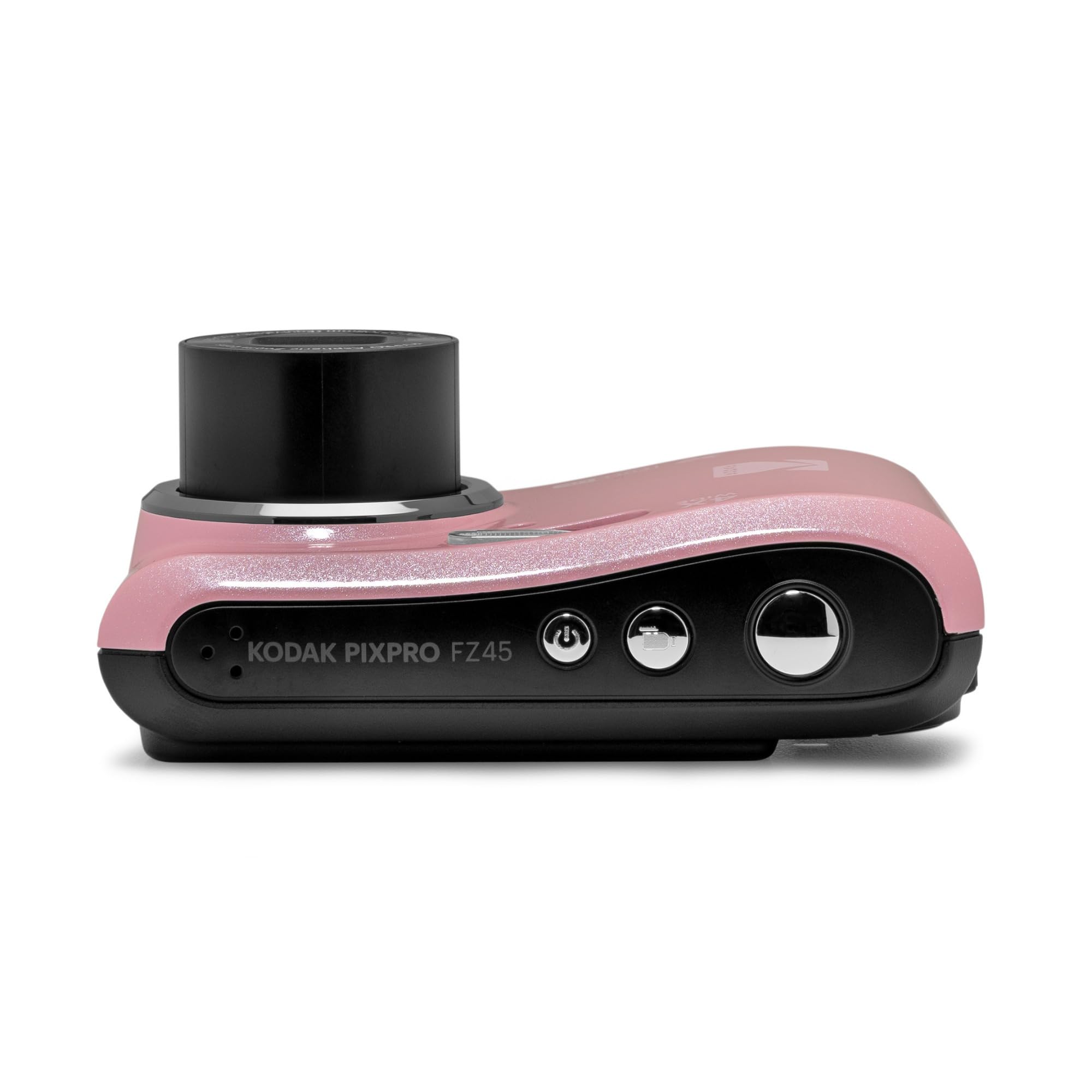 Kodak PixPro FZ45 Friendly Zoom 16MP 1080p Full HD Digital Camera (Pastel Pink) Capture clear photos and 1080p Full HD videos with the Kodak PIXPRO FZ45. This compact point-and-shoot features a 16MP CMOS sensor, 4x optical zoom, 27mm wide-angle lens, and a bright 2.7" LCD—all powered by easy-to-replace AA batteries. 16MP CMOS Sensor Capture high-resolution images with vibrant color and fine detail, ideal for everyday photography and sharing. 4x Optical Zoom Get closer to your subject without losing image quality—perfect for portraits, landscapes, and casual zoom shots. 27mm Wide Angle Lens Fit more into every frame, whether it's a group photo or a scenic landscape, thanks to the wider field of view. 1080p Full HD Video Recording Seamlessly switch from stills to high-quality video capture with a dedicated one-touch button for full HD footage. 2.7-Inch LCD Display Preview and review your shots easily with the bright, clear screen that helps with framing and playback. AA Battery Powered Powered by two AA batteries for ultimate convenience—no need for charging cables or adapters while traveling. Face Detection & Red-Eye Removal Automatically detects faces and minimizes red-eye for more natural, flattering portraits. Easy Operation & Compact Design Designed for simplicity and portability, making it perfect for beginners or anyone wanting a no-fuss camera.